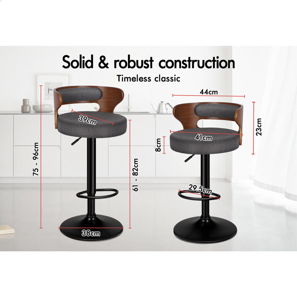 ALFORDSON 2x Bar Stools Reno Fabric Grey
