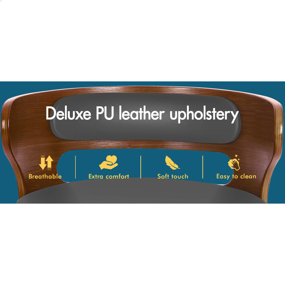 Not only with its iconic design and timeless appeal, but it is also cozy and practical. Upholstered in premium PU leather, the seat and backrest are richly padded with high-resilience foam and comfortable. Thanks to its high-density foam, they provide adequate support in the right places for a delightful sitting experience. Together with its SGS approved gas lift, you don't need to worry about explosion. It presents a 360-degree swivel and adjustable seat height, which makes your conversations smoothie and easy.