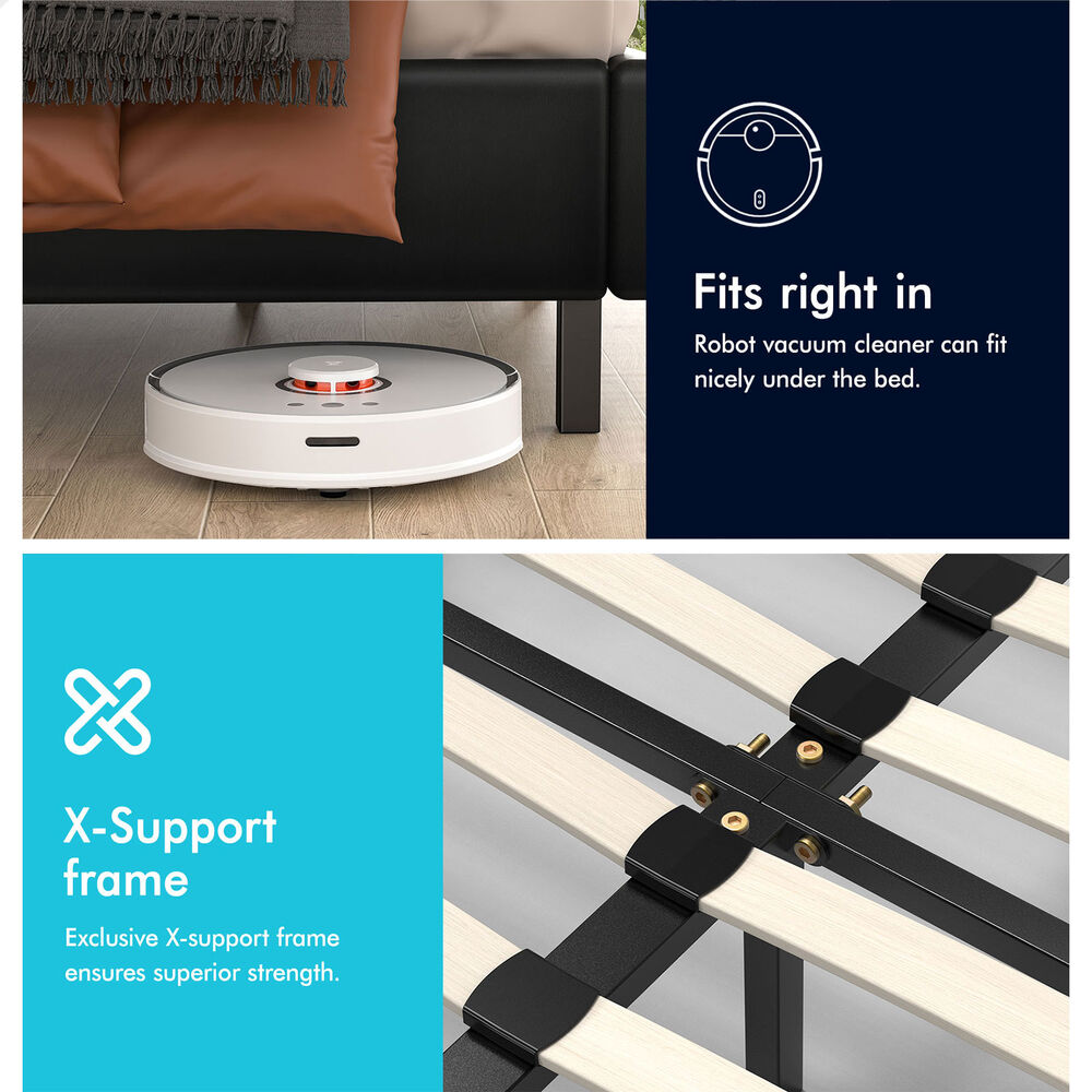 Keep it breezy - The mattress base will create a space where air can circulate freely. This helps you avoid any unwanted cold drafts and allows for better temperature regulation while you sleep on your mattress. The elevating design not only allows robot vacuum cleaner to go through under the bed, but also provides you with an additional storage space.