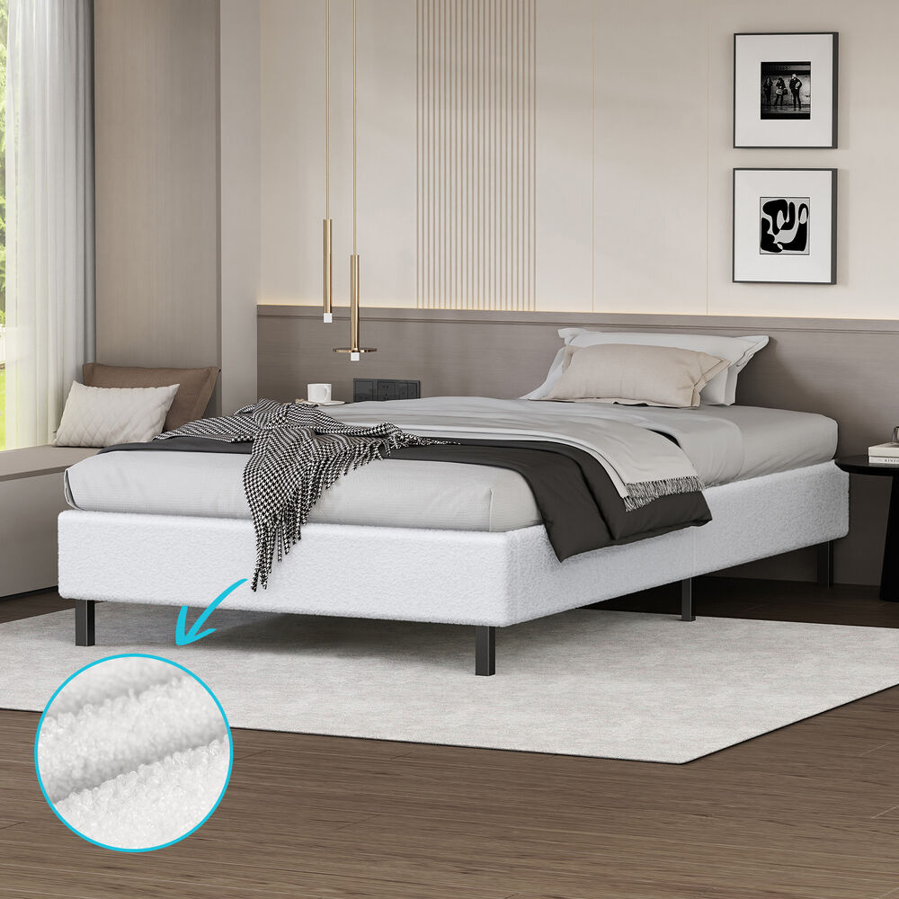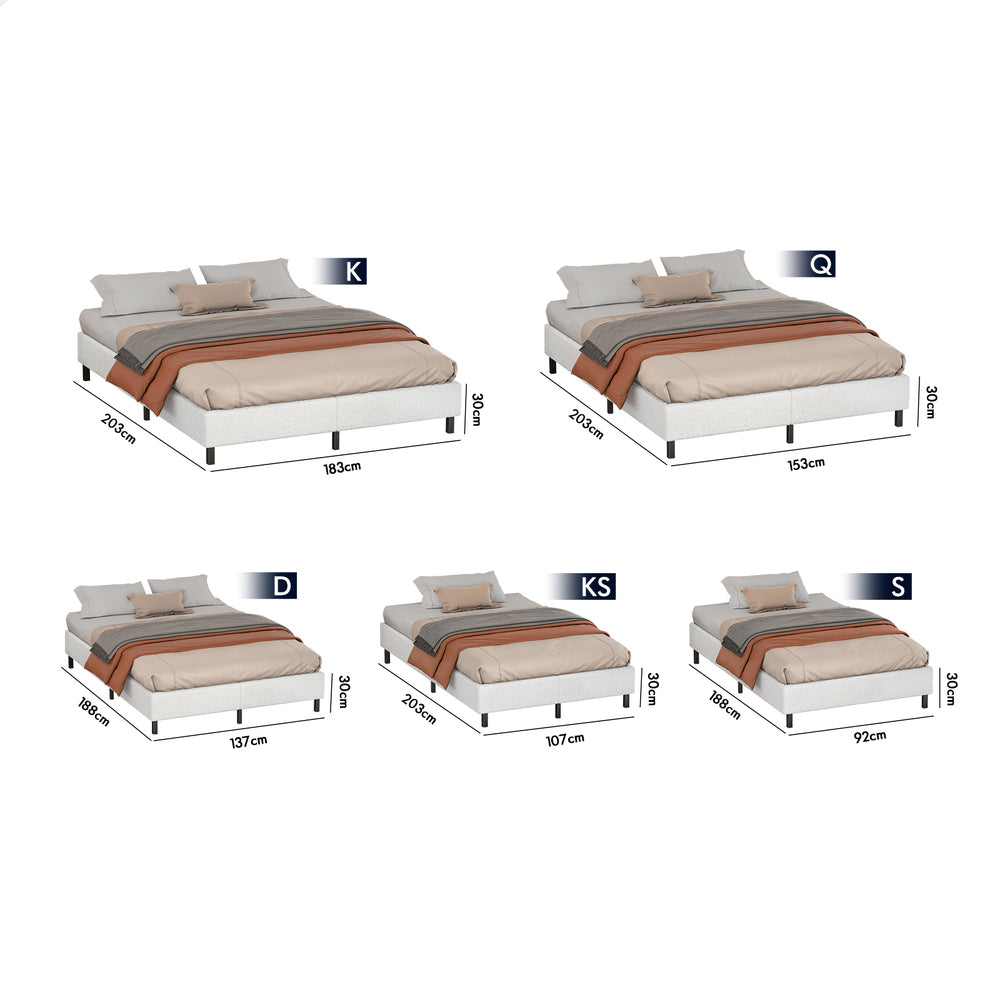 ALFORDSON Bed Frame King Single Mattress Base Foundation White Boucle BASEL