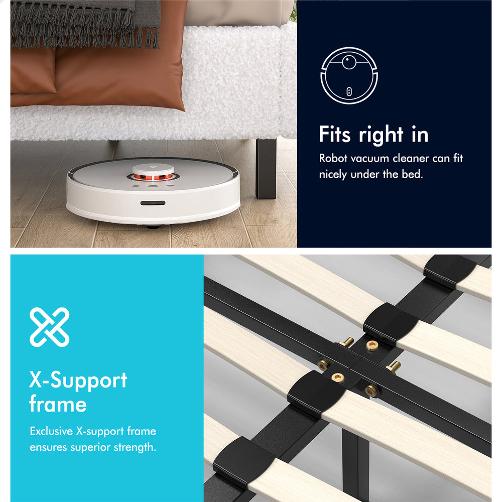 Keep it breezy - The mattress base will create a space where air can circulate freely. This helps you avoid any unwanted cold drafts and allows for better temperature regulation while you sleep on your mattress. The elevating design not only allows robot vacuum cleaner to go through under the bed, but also provides you with an additional storage space.