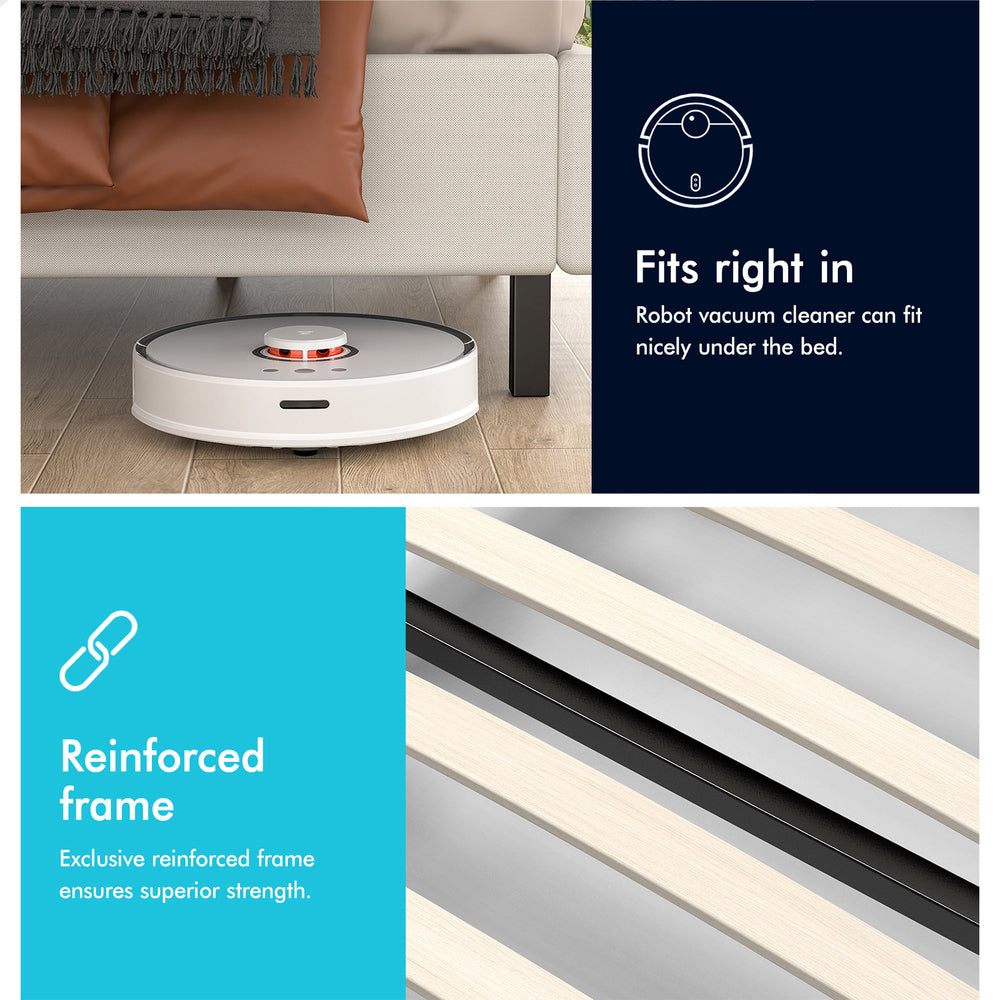 Keep it breezy - The mattress base will create a space where air can circulate freely. This helps you avoid any unwanted cold drafts and allows for better temperature regulation while you sleep on your mattress. The elevating design not only allows robot vacuum cleaner to go through under the bed, but also provides you with an additional storage space.