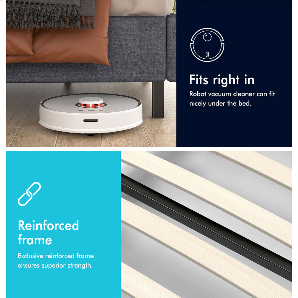 Keep it breezy - The mattress base will create a space where air can circulate freely. This helps you avoid any unwanted cold drafts and allows for better temperature regulation while you sleep on your mattress. The elevating design not only allows robot vacuum cleaner to go through under the bed, but also provides you with an additional storage space.