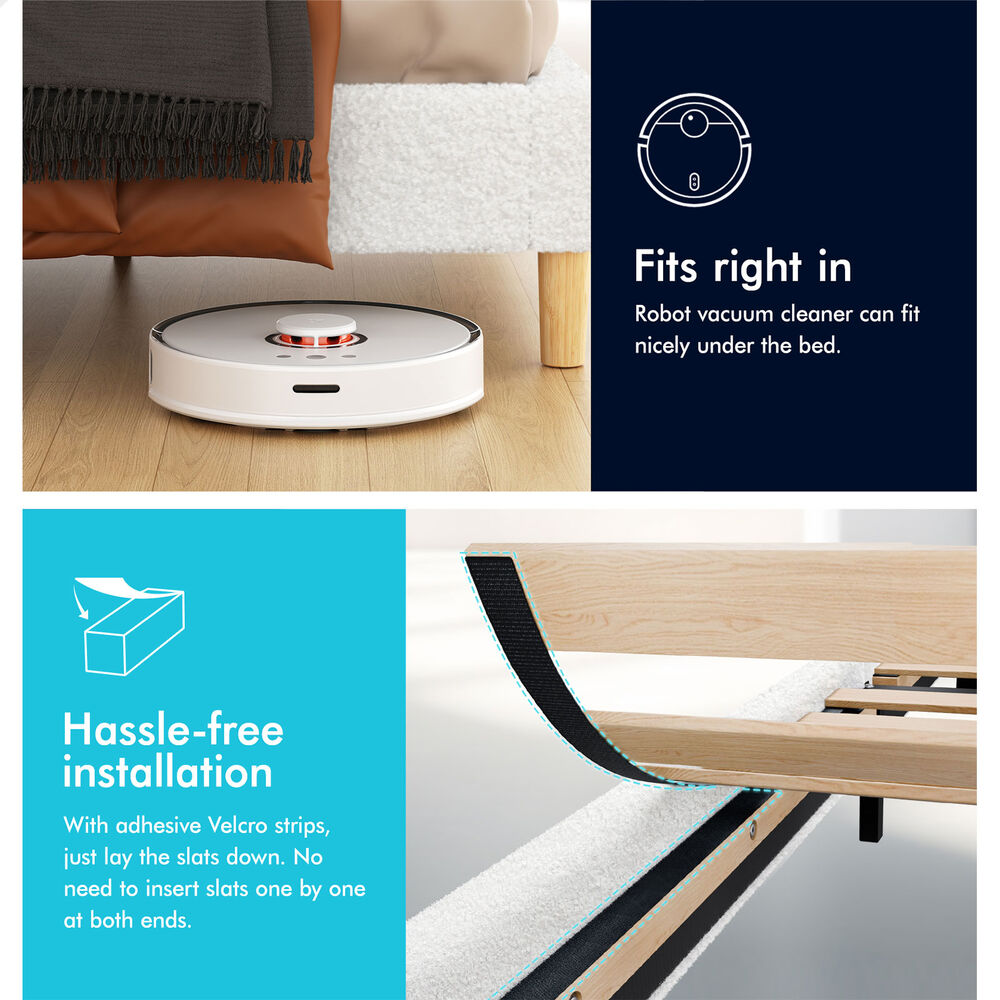 Keep it breezy - The mattress base will create a space where air can circulate freely. This helps you avoid any unwanted cold drafts and allows for better temperature regulation while you sleep on your mattress. The elevating design not only allows robot vacuum cleaner to go through under the bed, but also provides you with an additional storage space.