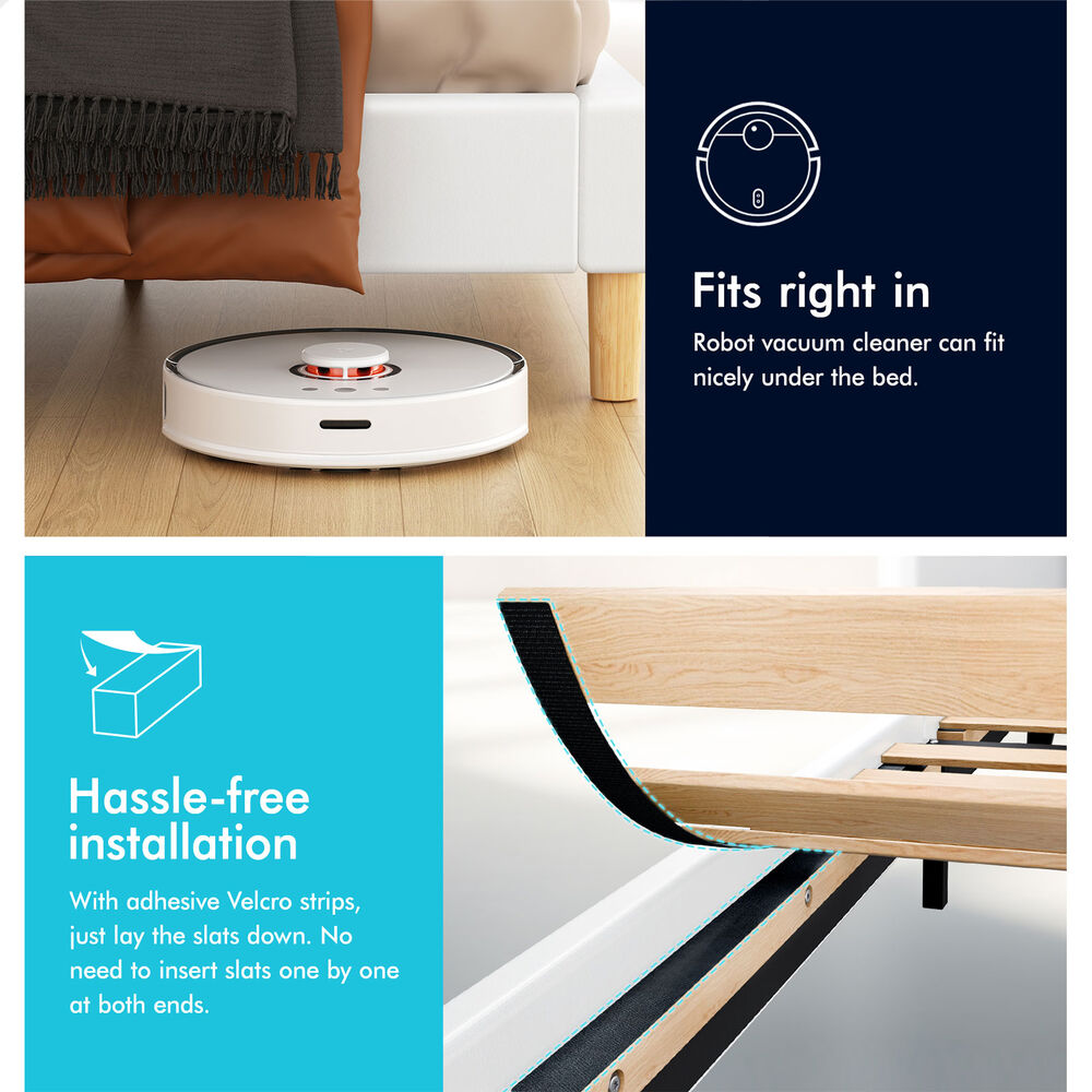 Keep it breezy - The mattress base will create a space where air can circulate freely. This helps you avoid any unwanted cold drafts and allows for better temperature regulation while you sleep on your mattress. The elevating design not only allows robot vacuum cleaner to go through under the bed, but also provides you with an additional storage space.