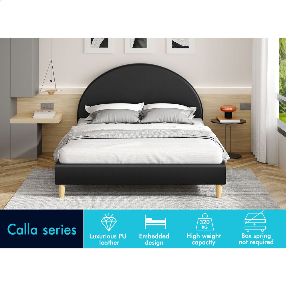 ALFORDSON Bed Frame Queen Size Mattress Base Platform Black Leather CALLA