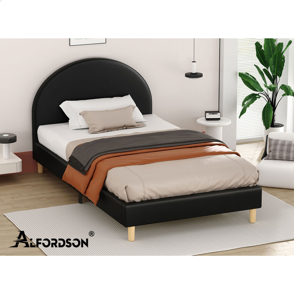 ALFORDSON Bed Frame Single Size Mattress Base Platform Black Leather CALLA