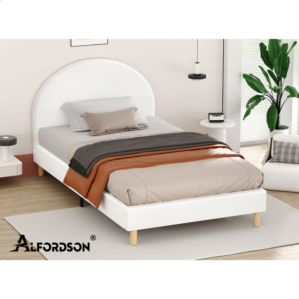 ALFORDSON Bed Frame Single Size Mattress Base Platform Leather White CALLA