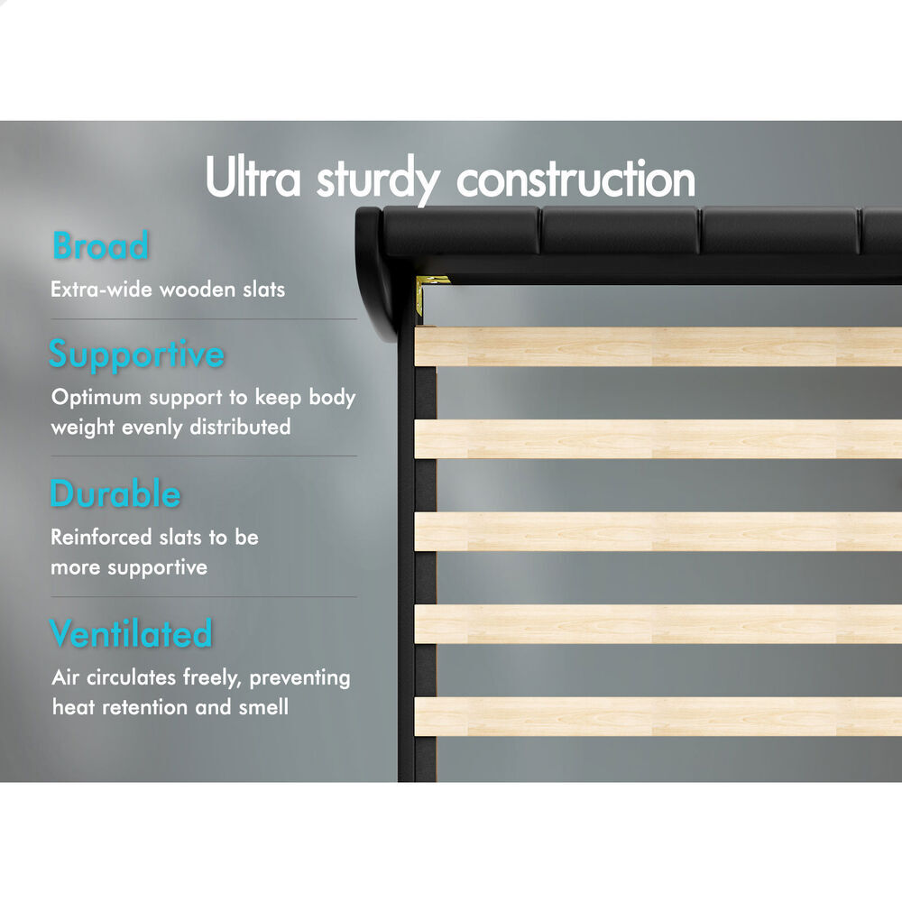 ALFORDSON Bed Frame Double Size Tufted Headboard Base Black Leather HUNDOLF