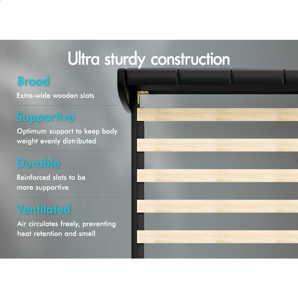 ALFORDSON Bed Frame King Single Tufted Headboard Base Black Leather HUNDOLF