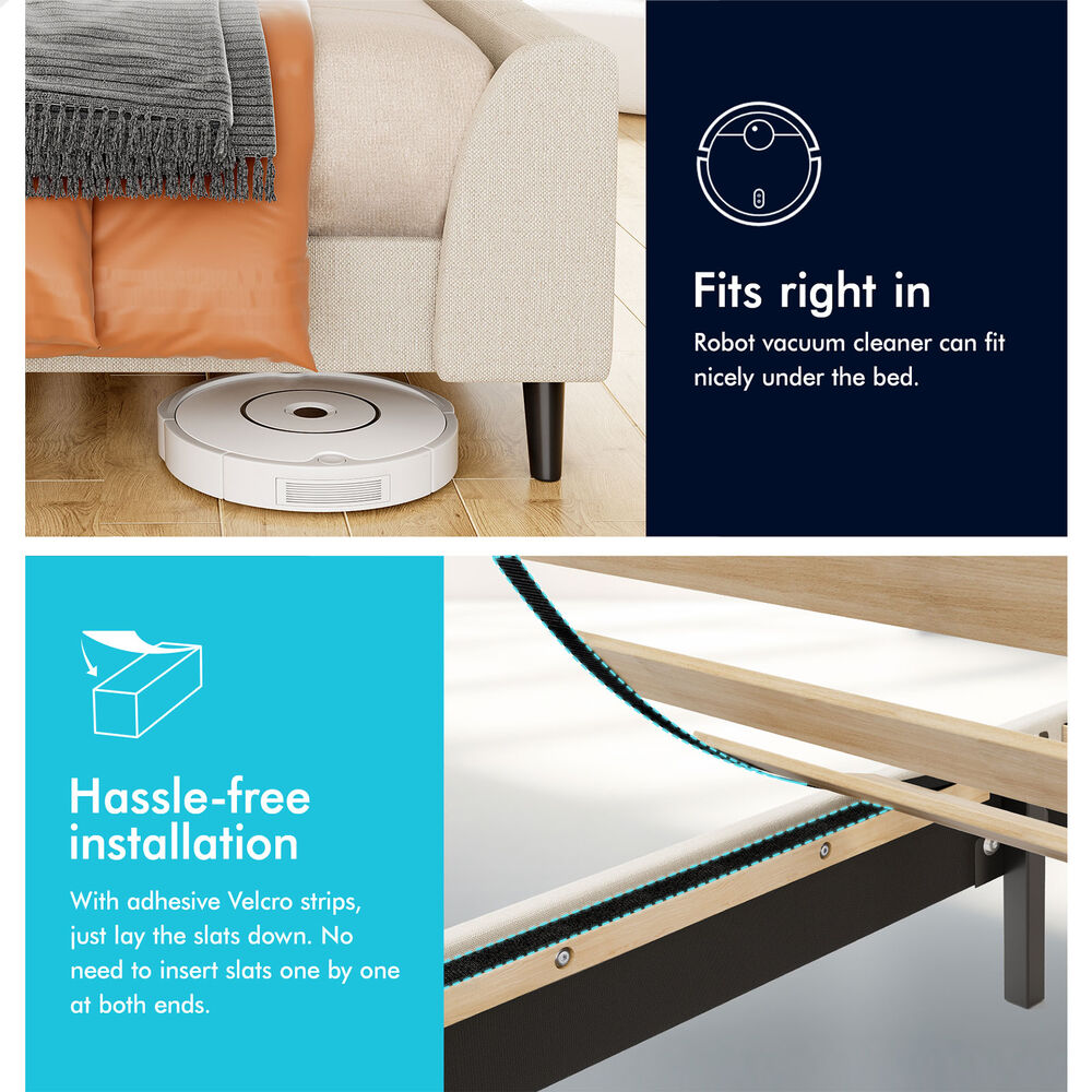 Quality counts - Constructed of durable wood slats and reinforced with exclusive X-support frame, this bed frame provides you with full sense of security. What's more, with adhesive Velcro strips, you can just lay the slats down, without inserting slats one by one at both end caps. Enjoy hassle-free installation!