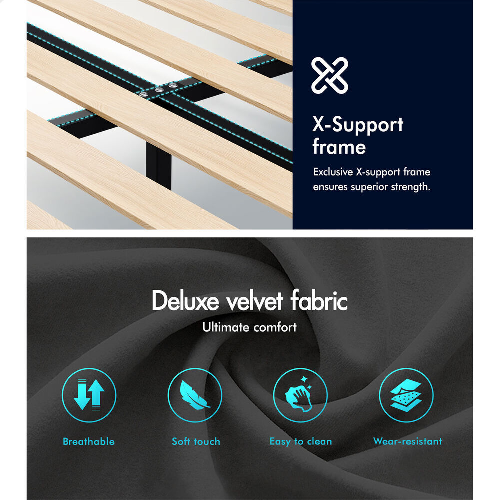 ALFORDSON Bed Frame King Single Tufted Headboard Base Grey Velvet HUNDOLF