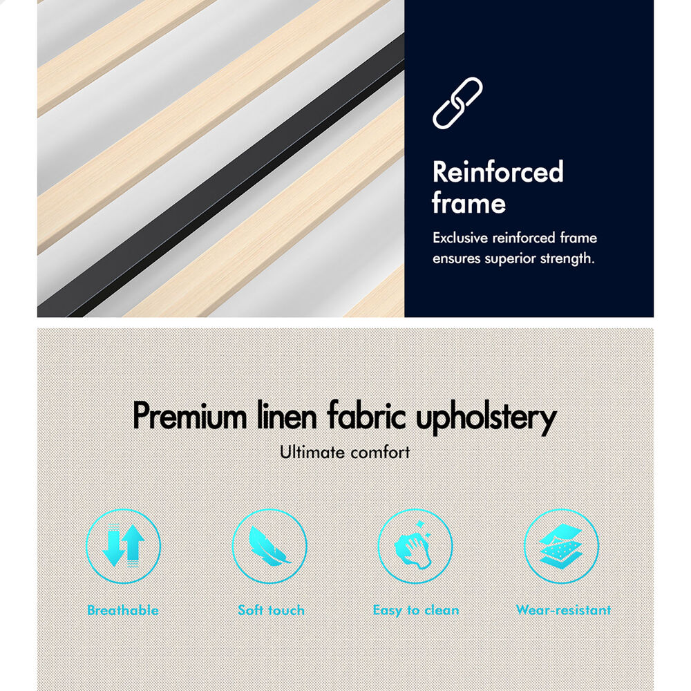 ALFORDSON Bed Frame Single Size Tufted Headboard Base Beige Fabric HUNDOLF