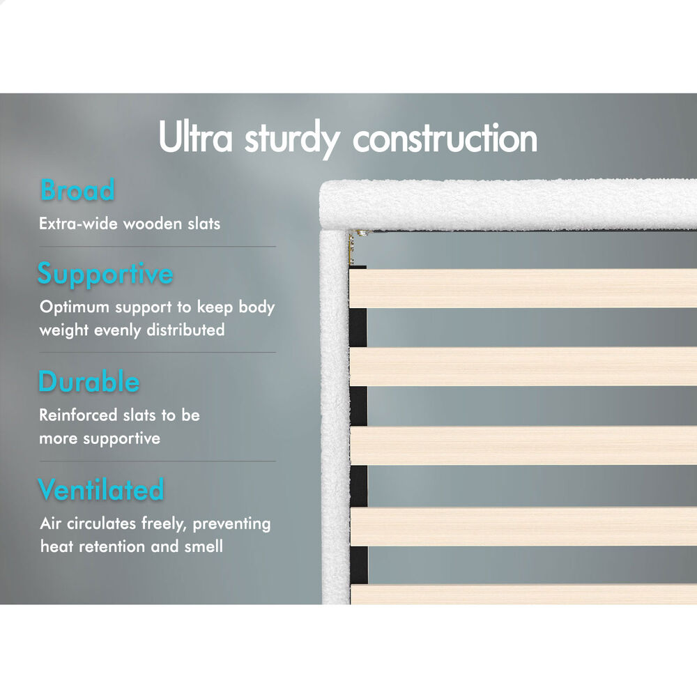 ALFORDSON Bed Frame Double Size Upholstered Platform White Boucle HARLENE