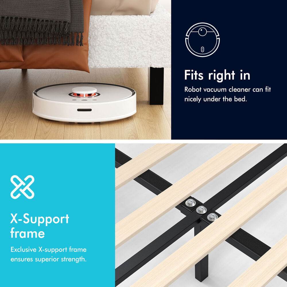 Keep it breezy - The mattress base will create a space where air can circulate freely. This helps you avoid any unwanted cold drafts and allows for better temperature regulation while you sleep on your mattress. The elevating design not only allows robot vacuum cleaner to go through under the bed, but also provides you with an additional storage space.