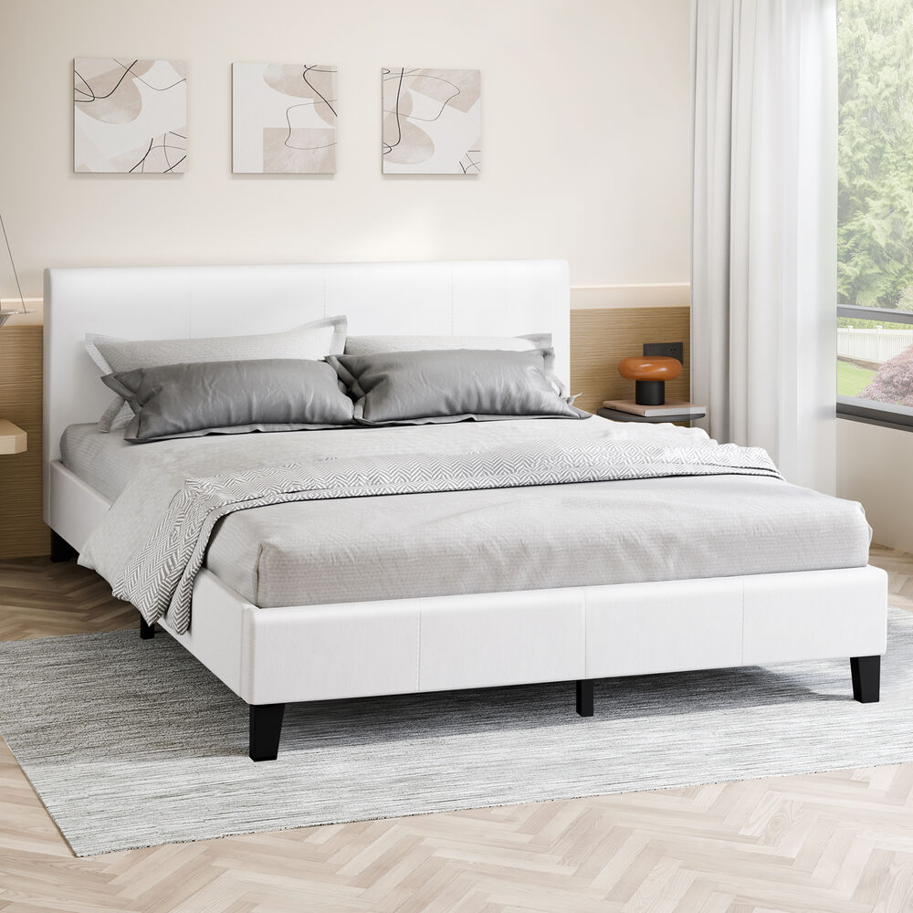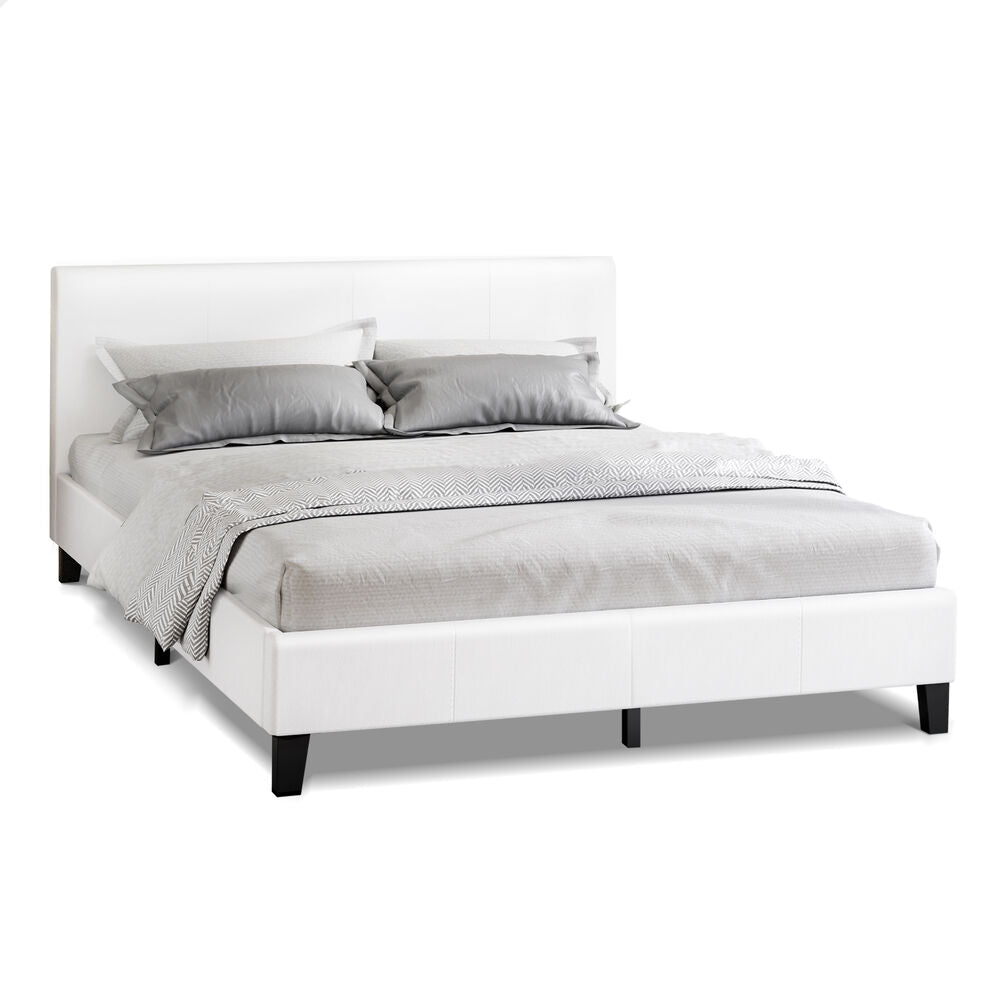 ALFORDSON Bed Frame King Size Mattress Base Wooden Platform Leather White