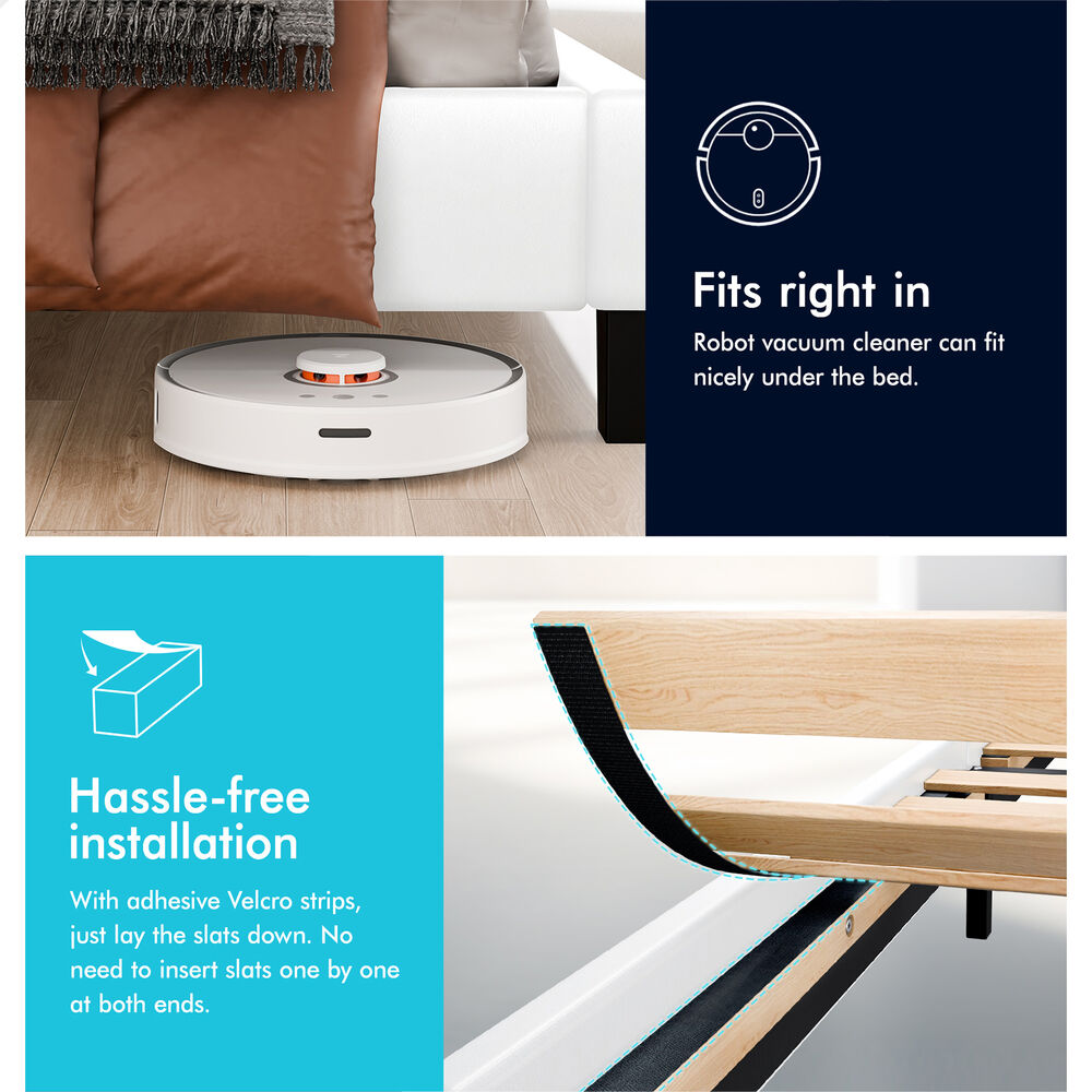 * Convenient bed slats with adhesive Velcro strips - no need to insert slats one by one at both end caps