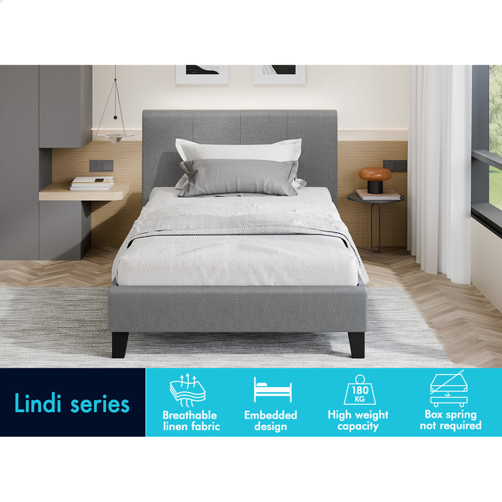 ALFORDSON Bed Frame King Single Mattress Base Wooden Platform Fabric Grey