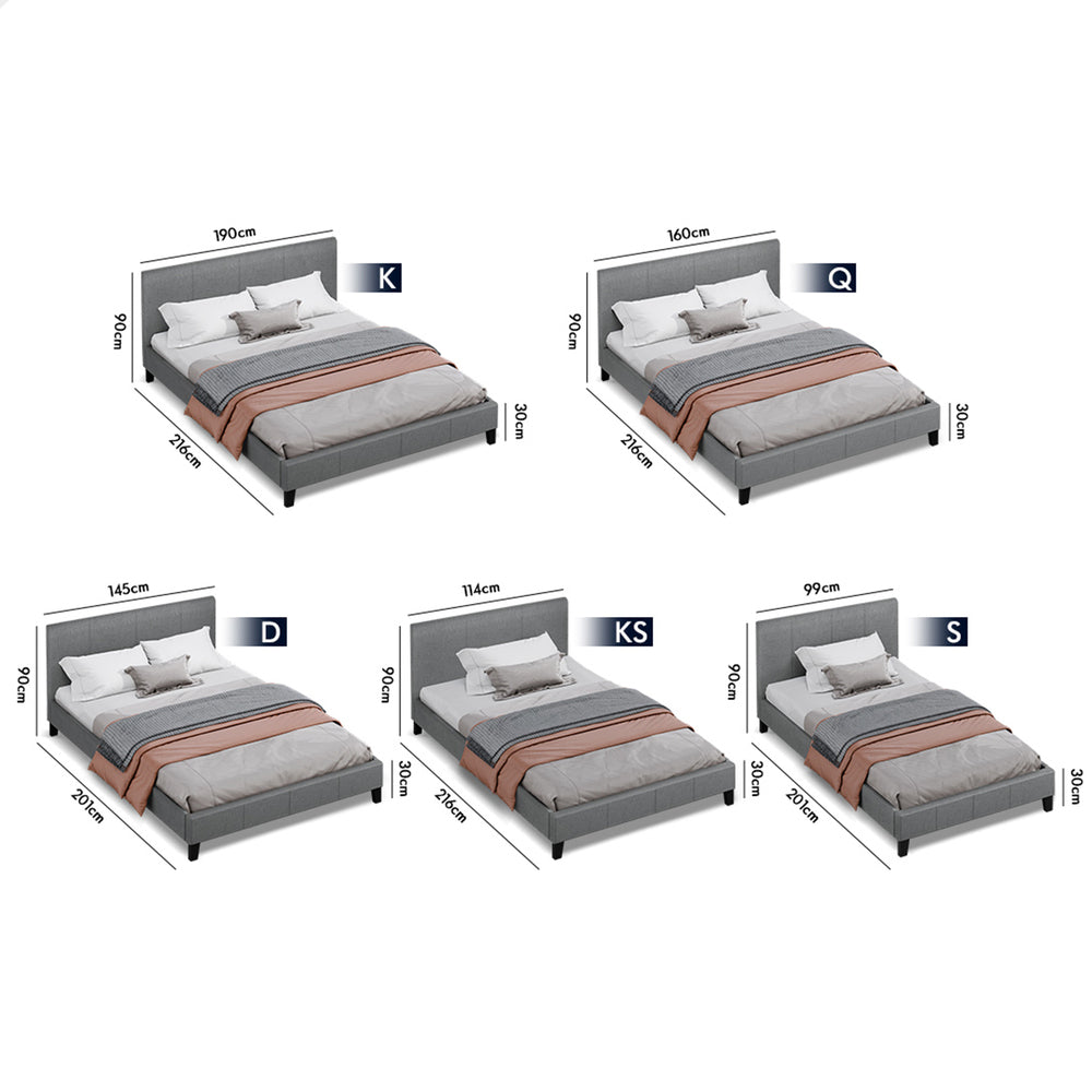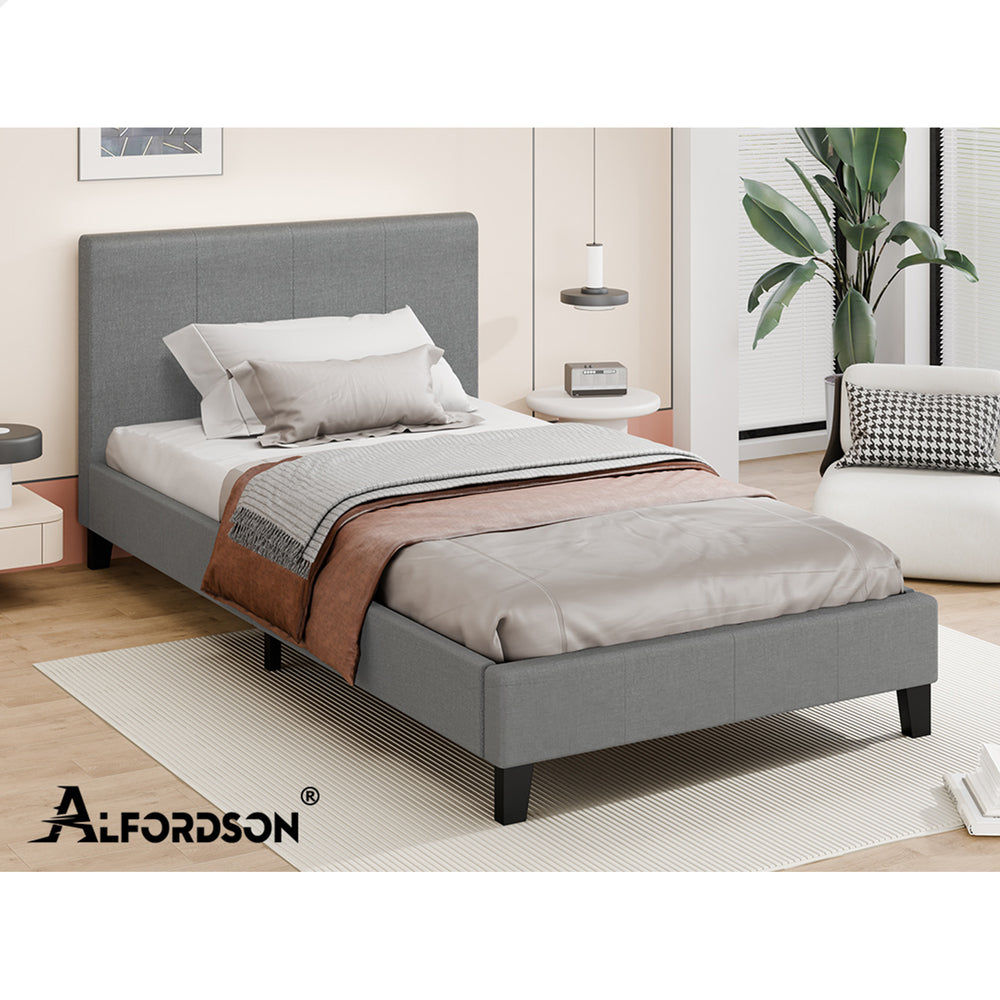 ALFORDSON Bed Frame Single Size Mattress Base Wooden Platform Fabric Grey