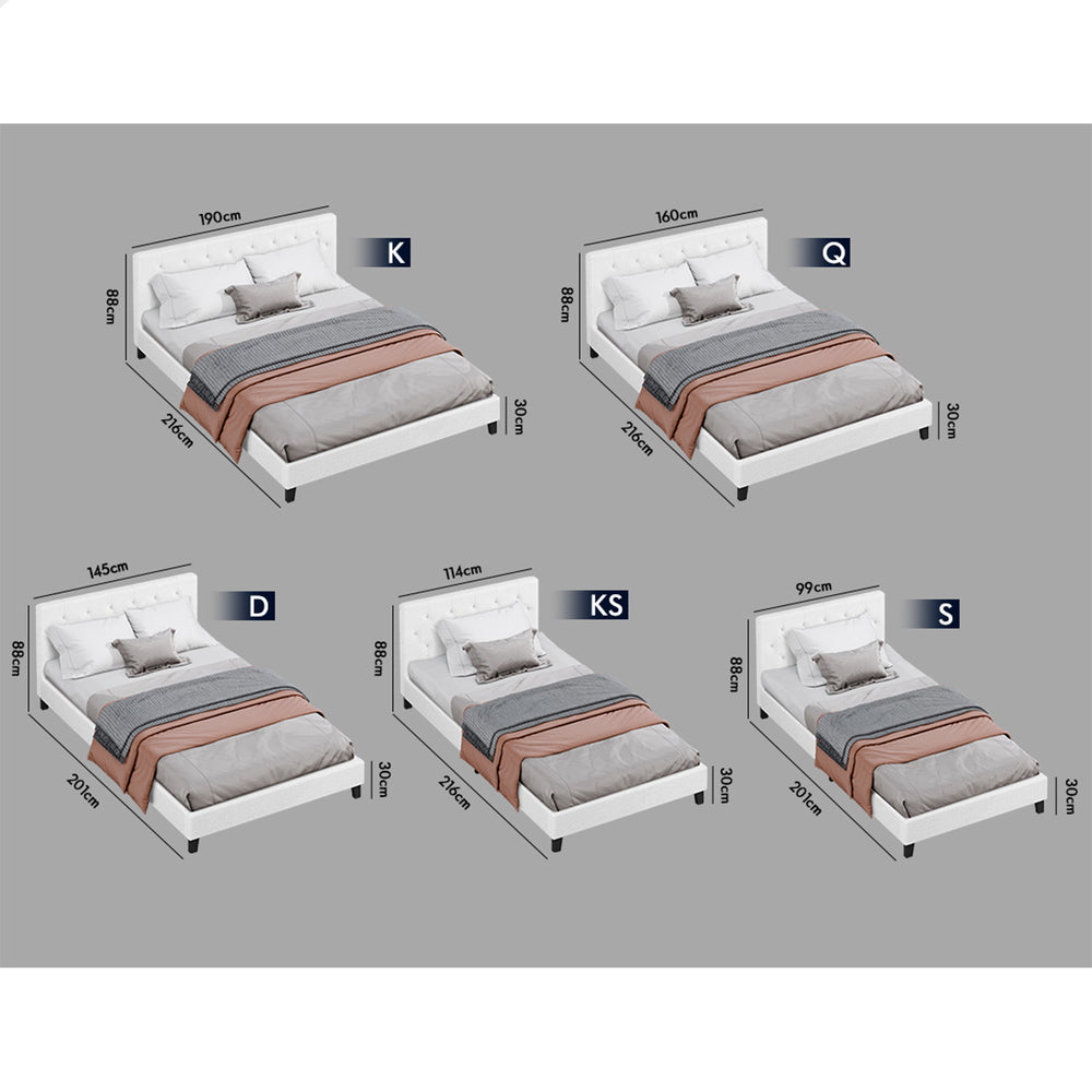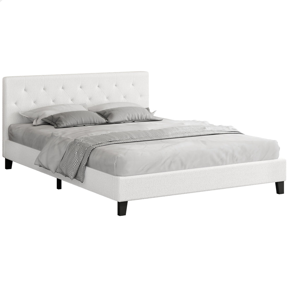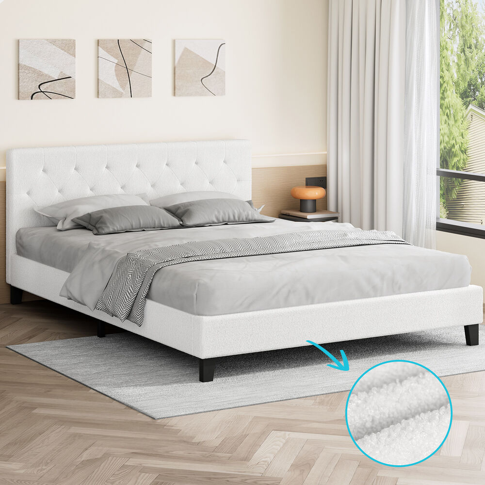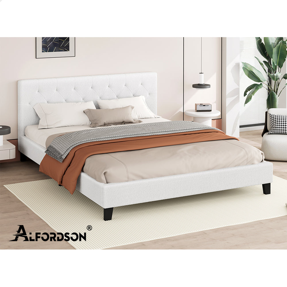 ALFORDSON Bed Frame Double Size Wooden Base Platform White Boucle MADELYN