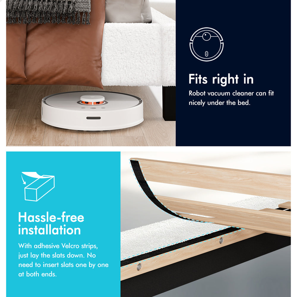 Keep it breezy - The mattress base will create a space where air can circulate freely. This helps you avoid any unwanted cold drafts and allows for better temperature regulation while you sleep on your mattress. The elevating design not only allows robot vacuum cleaner to go through under the bed, but also provides you with an additional storage space.