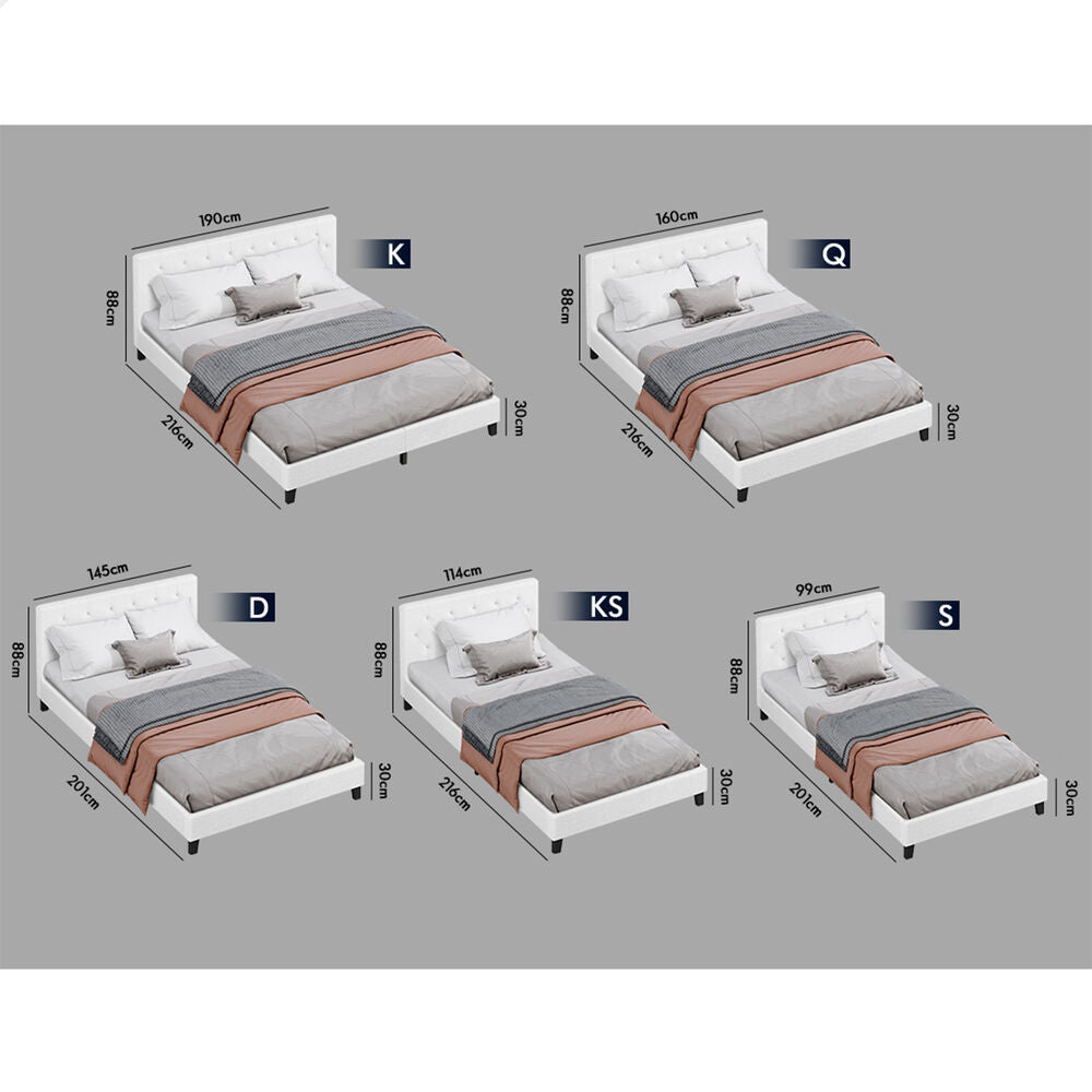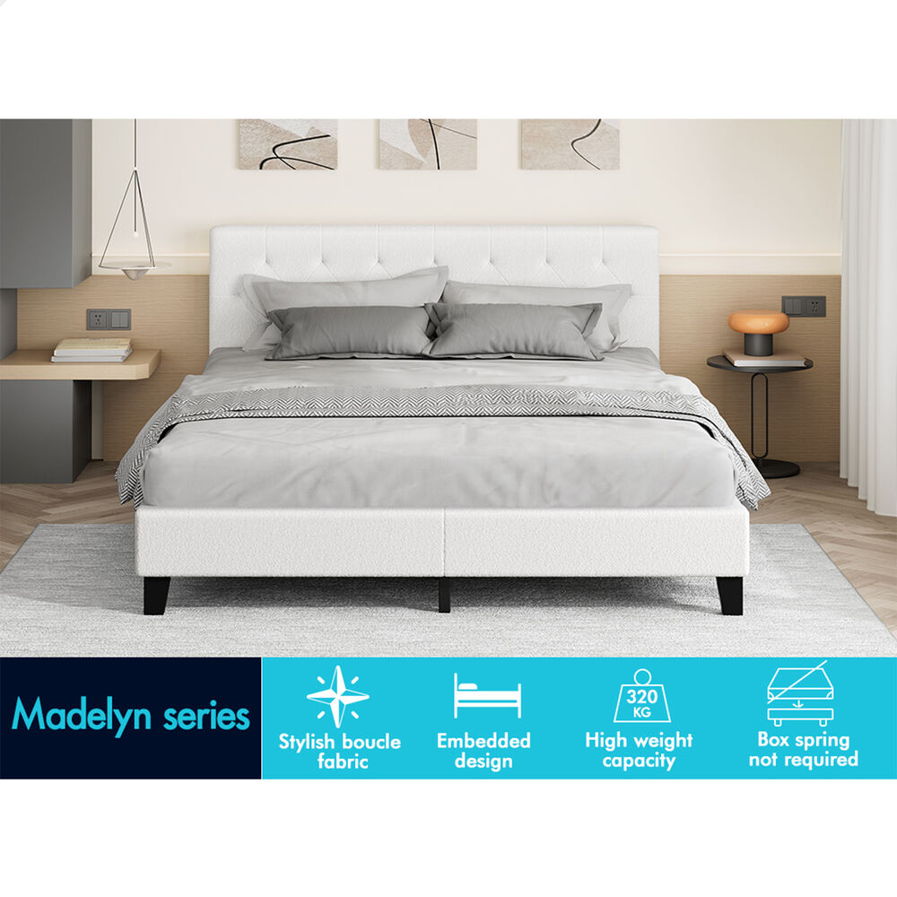 ALFORDSON Bed Frame King Size Wooden Base Platform White Boucle MADELYN