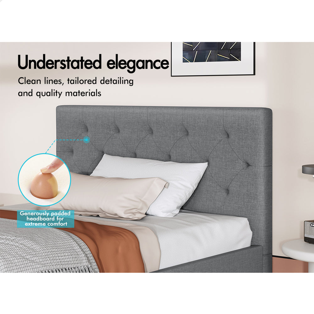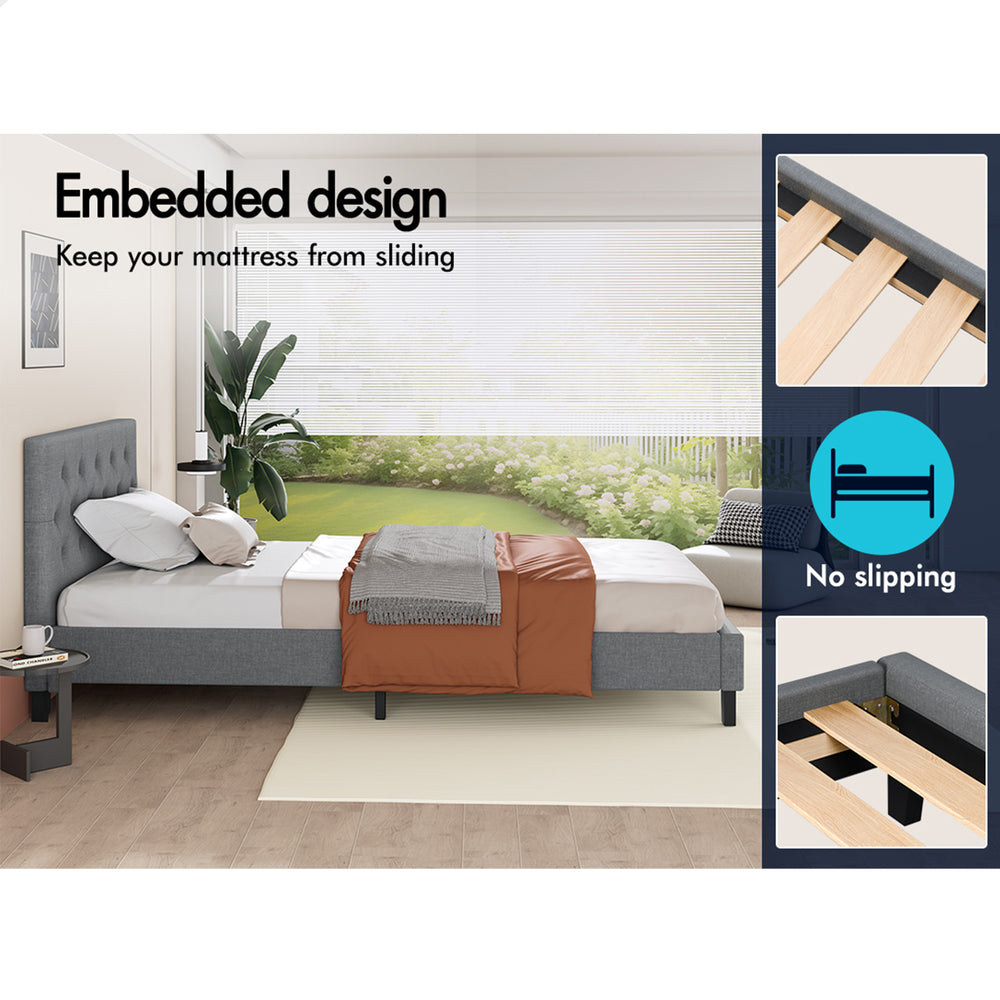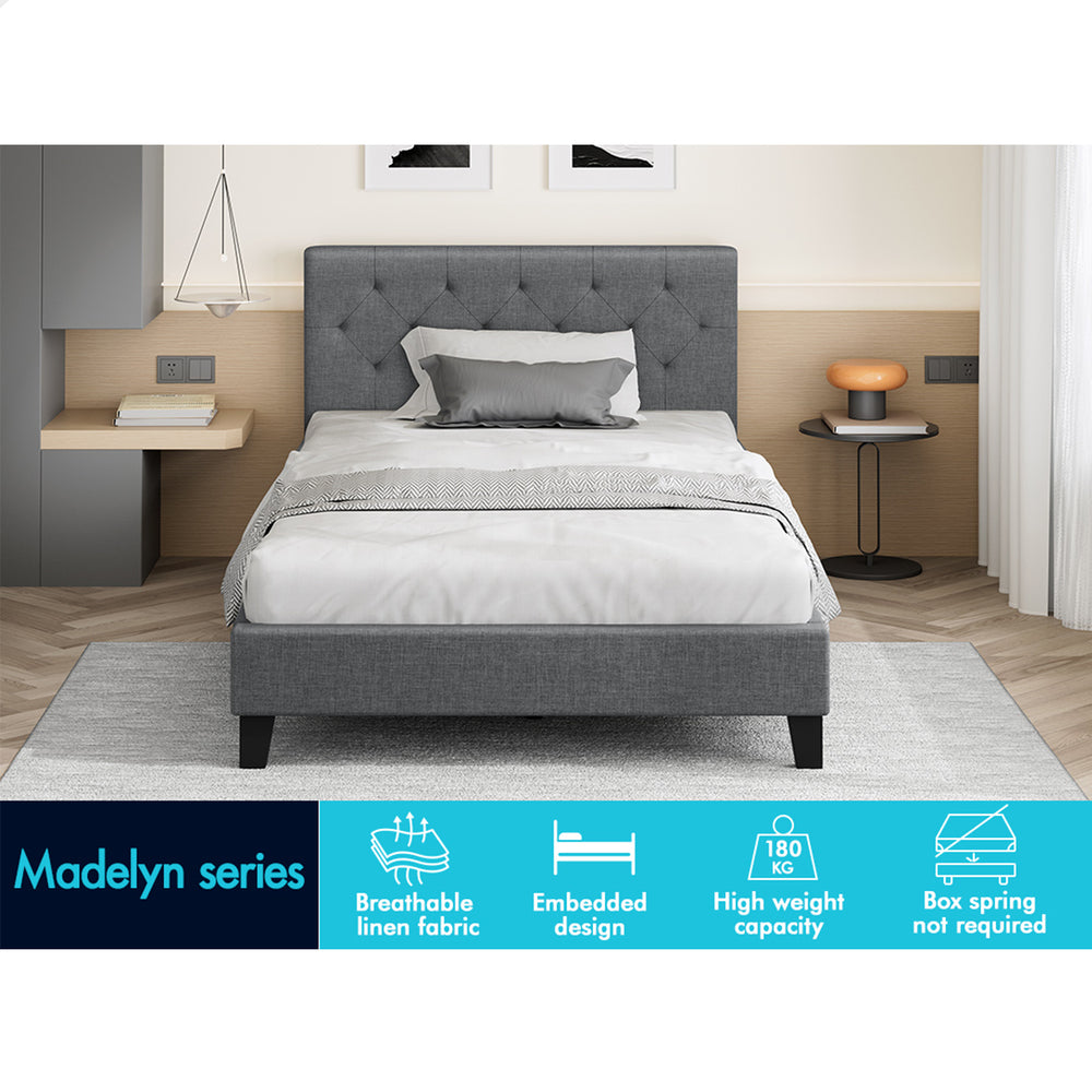 ALFORDSON Bed Frame King Single Wooden Base Platform Grey Fabric MADELYN