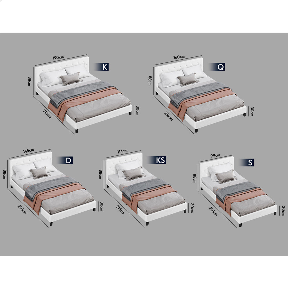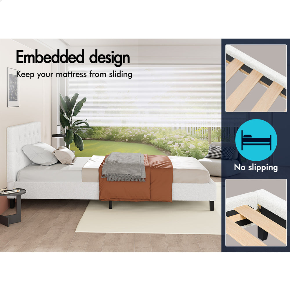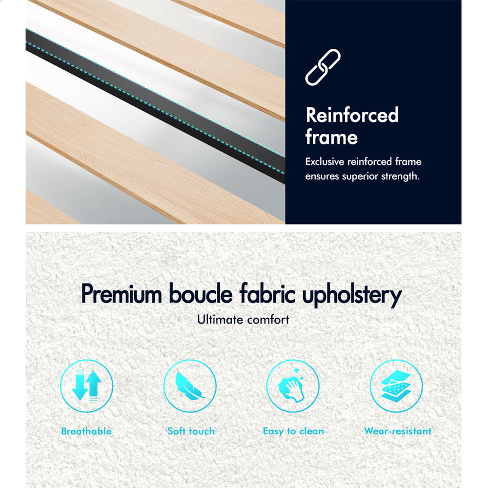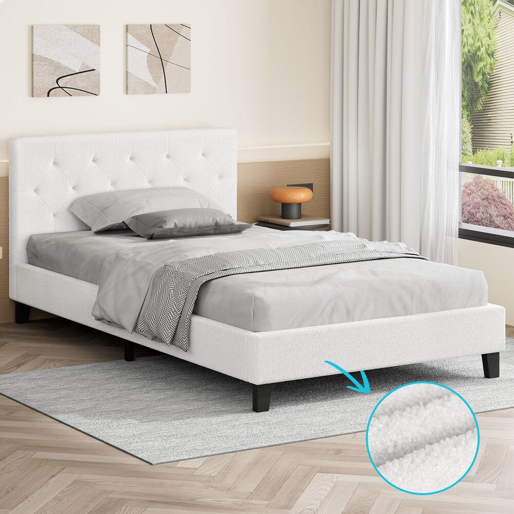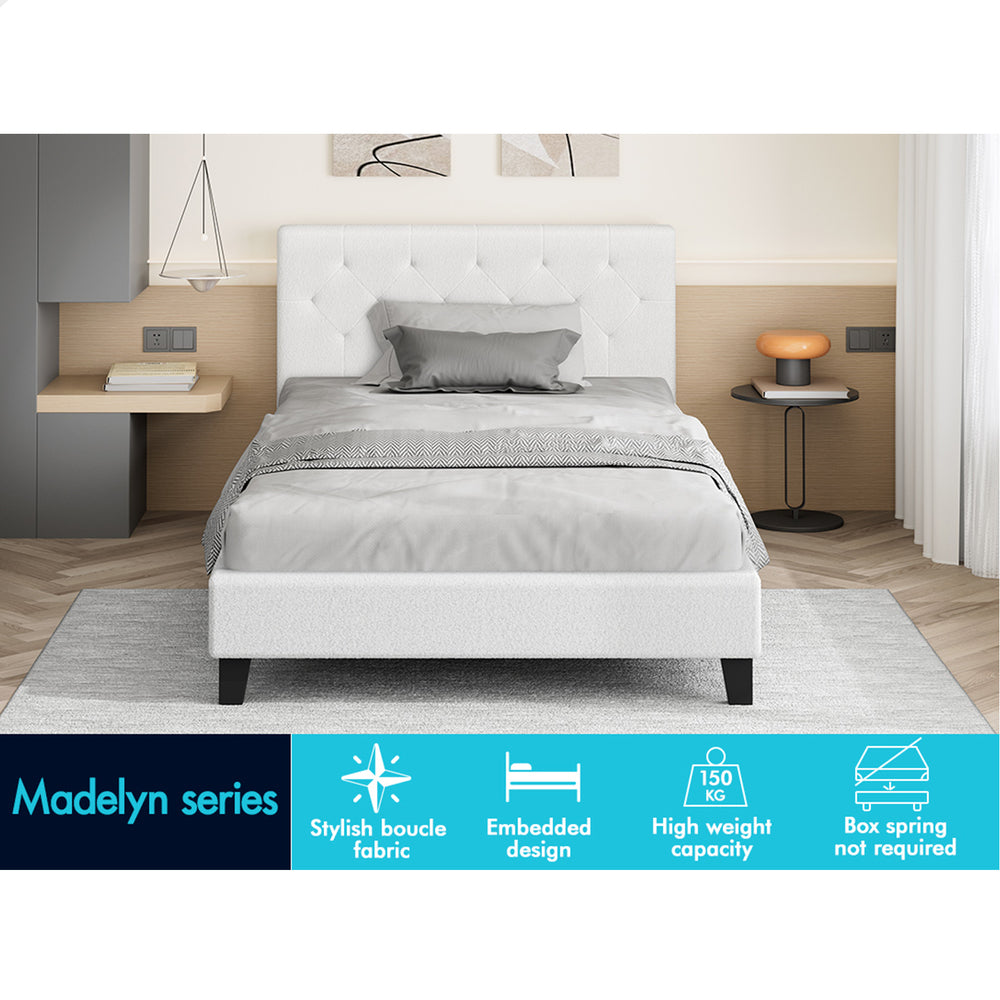 ALFORDSON Bed Frame Single Size Wooden Base Platform White Boucle MADELYN