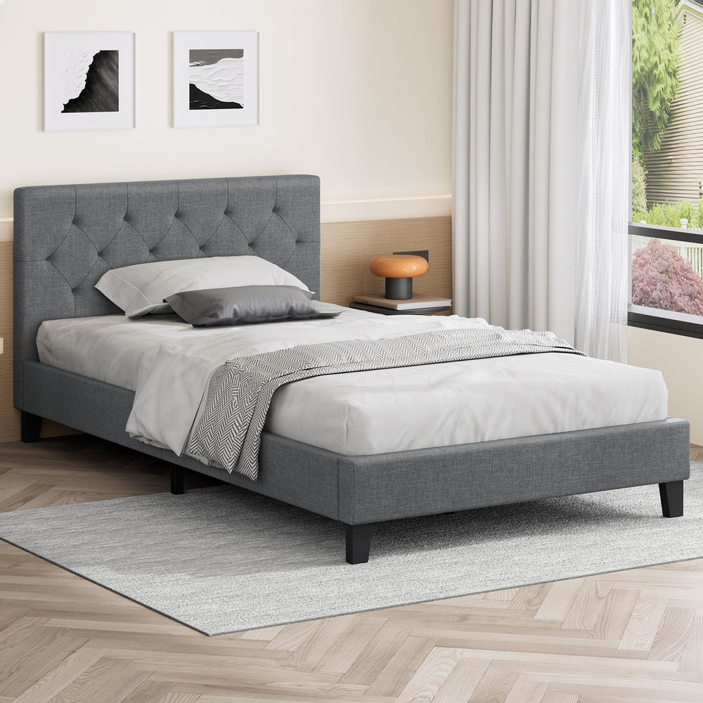ALFORDSON Bed Frame Single Size Wooden Base Platform Grey Fabric MADELYN