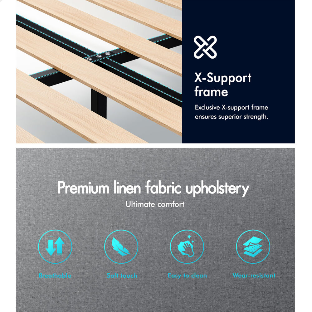 ALFORDSON Bed Frame King Size Tufted Headboard Modern Fabric Grey Meduna