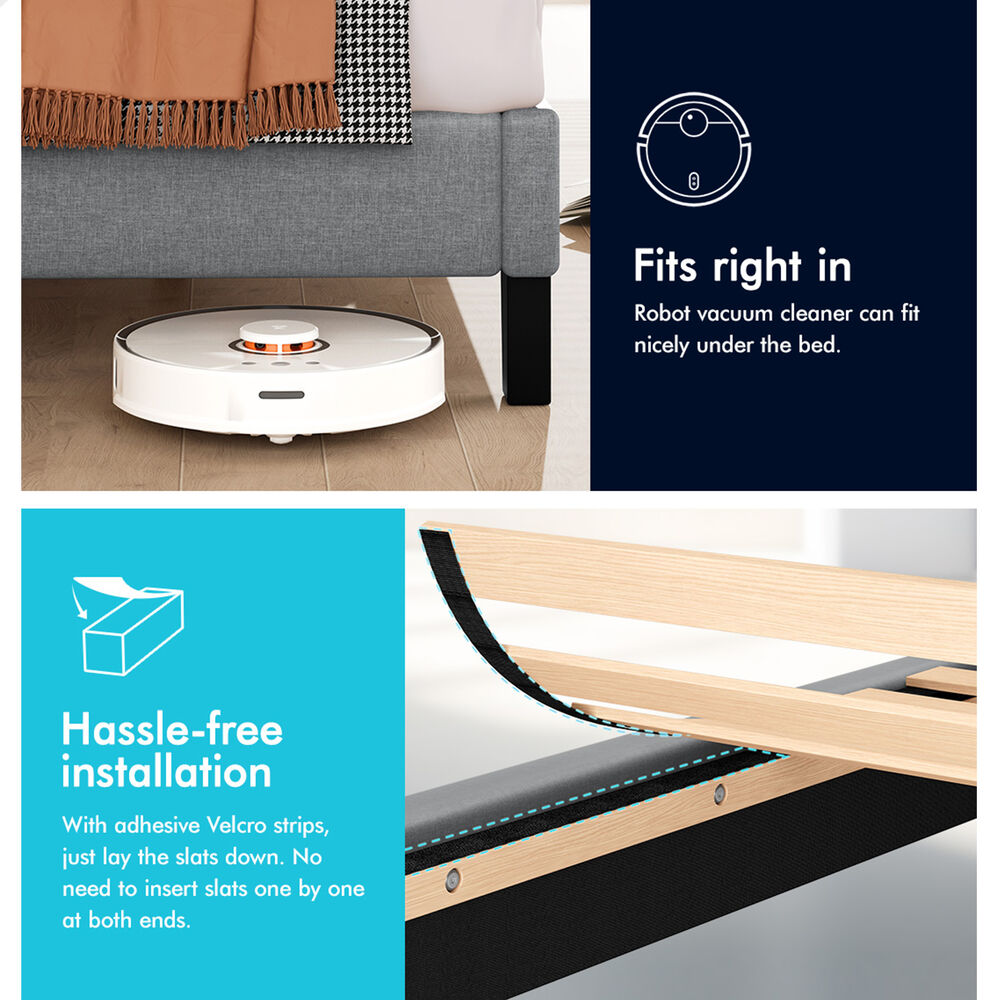 Quality counts - Constructed of durable wood slats and reinforced with exclusive X-support frame, this bed frame provides you with full sense of security. What's more, with adhesive Velcro strips, you can just lay the slats down, without inserting slats one by one at both end caps. Enjoy hassle-free installation!