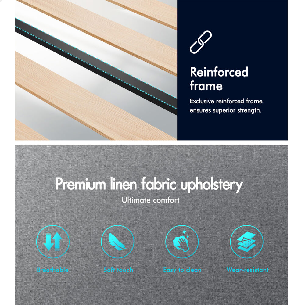 ALFORDSON Bed Frame Single Size Tufted Headboard Modern Fabric Grey Meduna