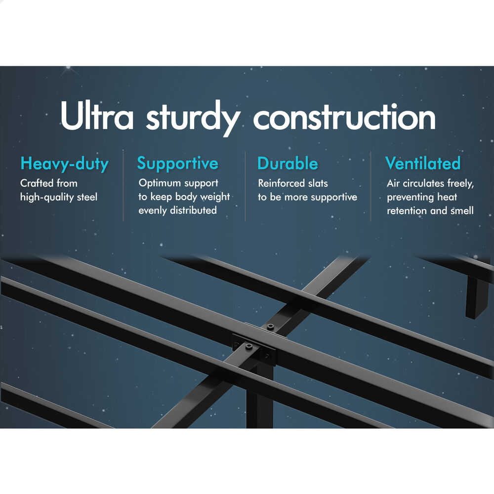 Quality counts - Featuring enhanced metal frame construction, this bed frame boasts unparalleled stability, remaining solid and steady. The heavy-duty steel frame ensures high weight capacity and long-lasting durability.