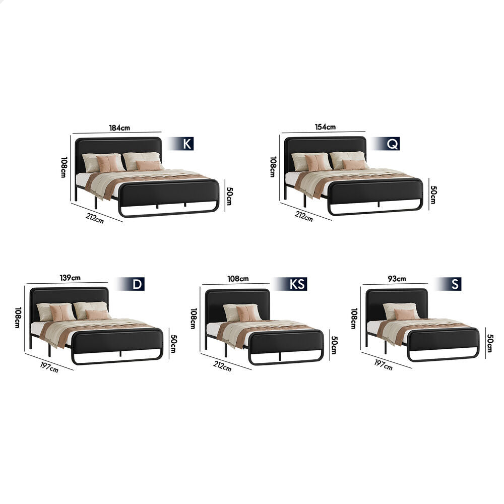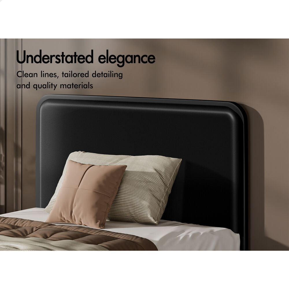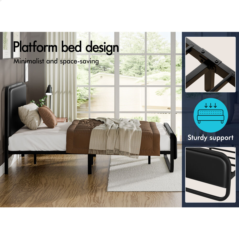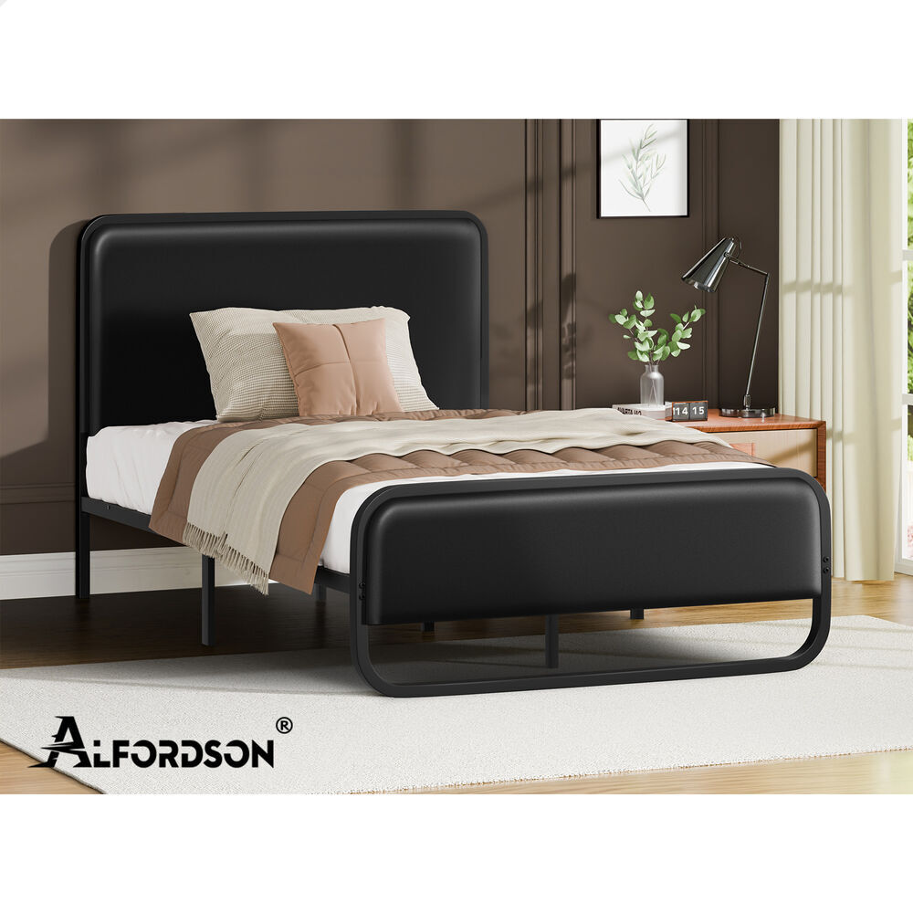 ALFORDSON Metal Bed Frame King Single Upholstered Headboard Black Leather MADGE