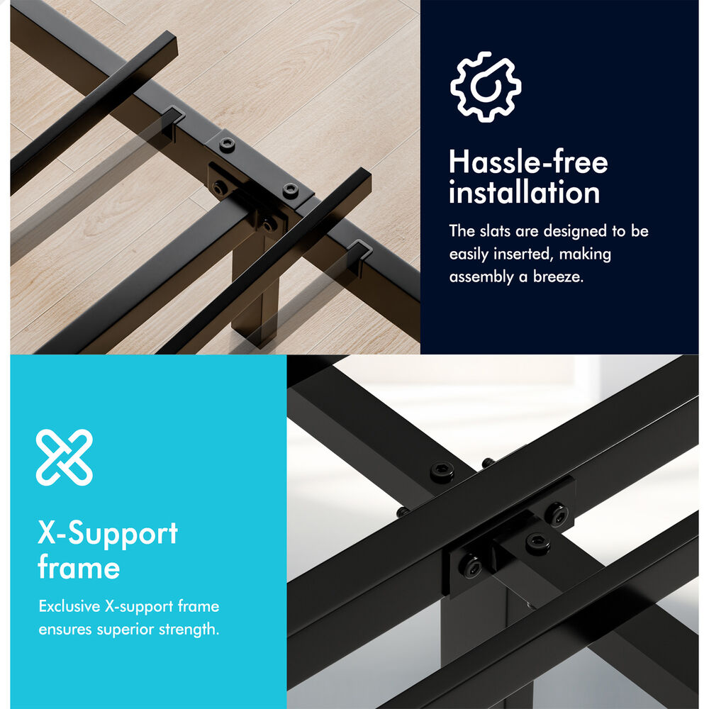 Quality counts - Featuring enhanced metal frame construction, this bed frame boasts unparalleled stability, remaining solid and steady. The heavy-duty steel frame ensures high weight capacity and long-lasting durability.