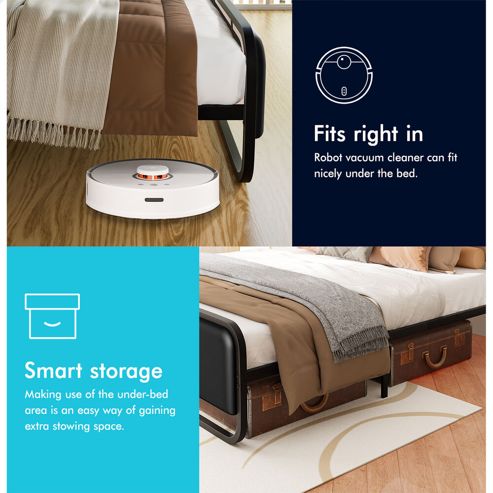 More storage place - The elevating design not only allows robot vacuum cleaner to go through under the bed, but also provides you with an additional storage space.