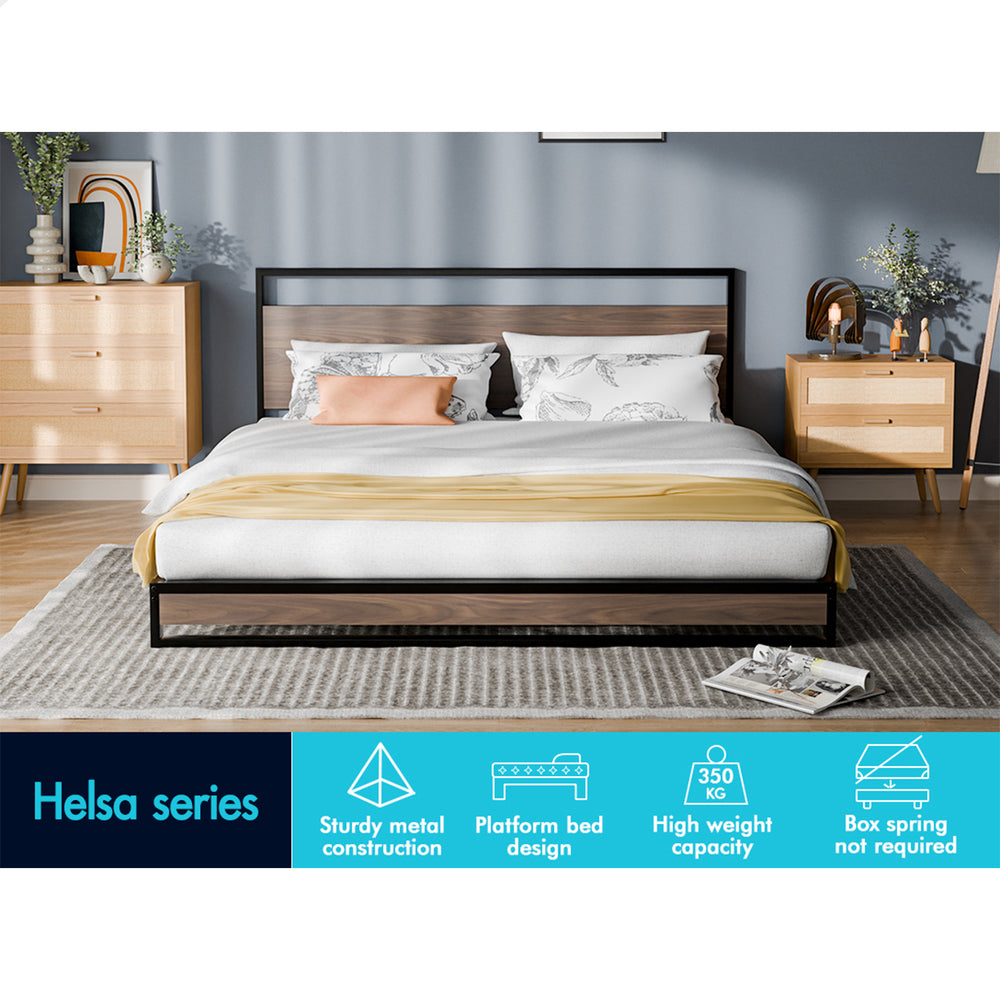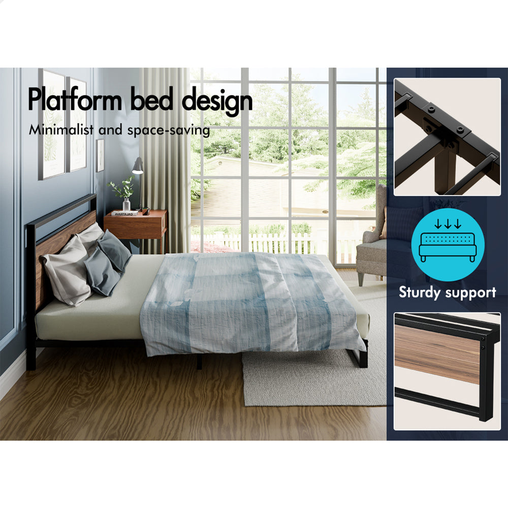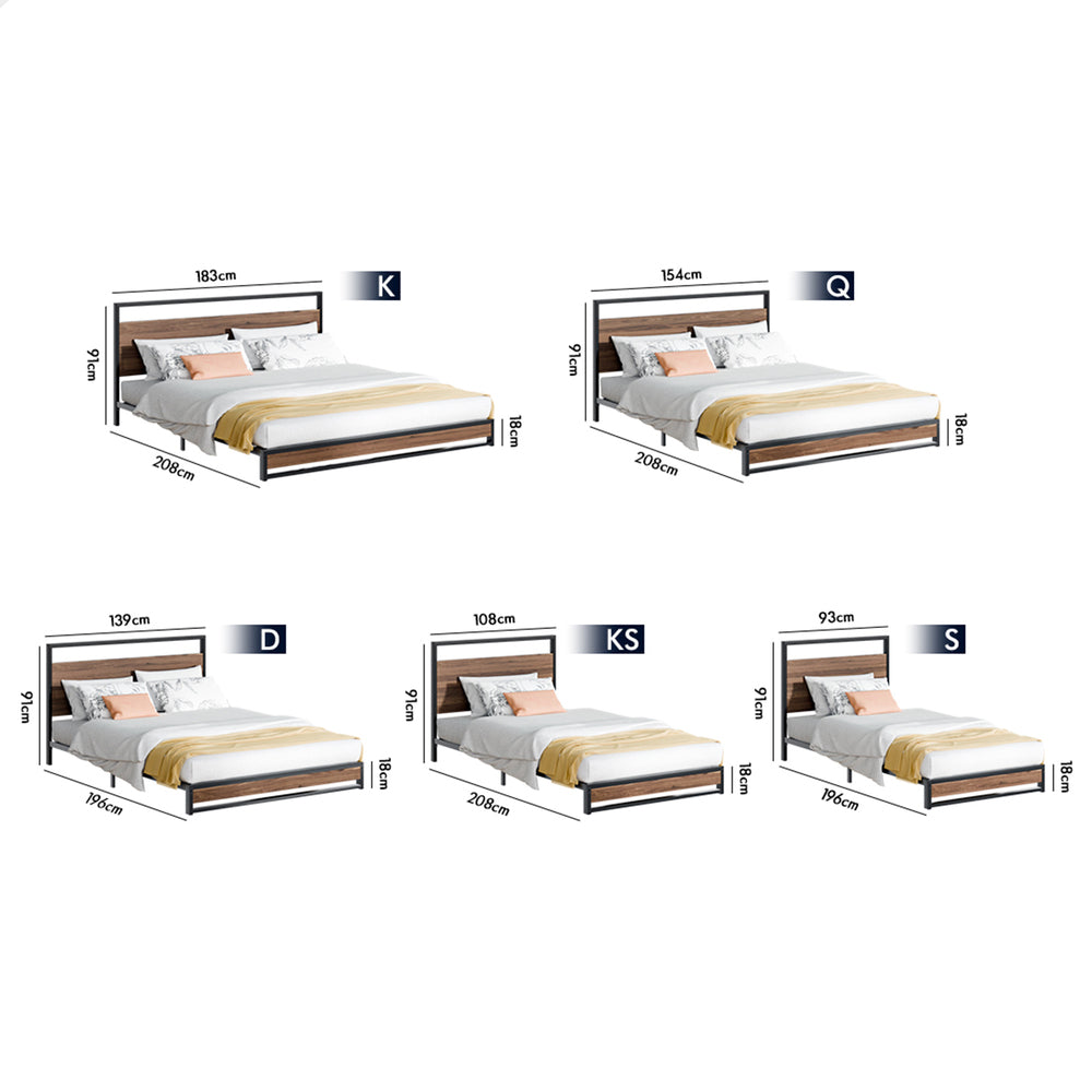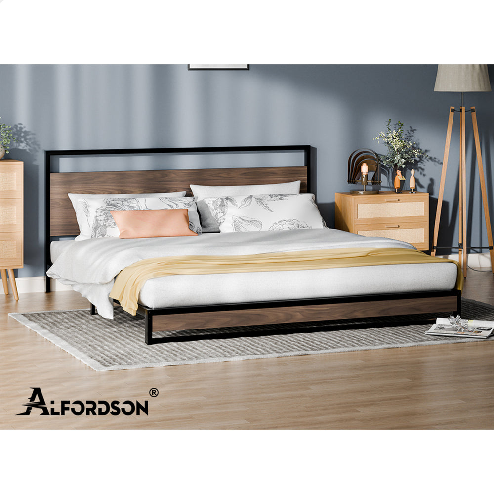 ALFORDSON Metal Bed Frame King Size Industrial Platform Mattress Base Wood