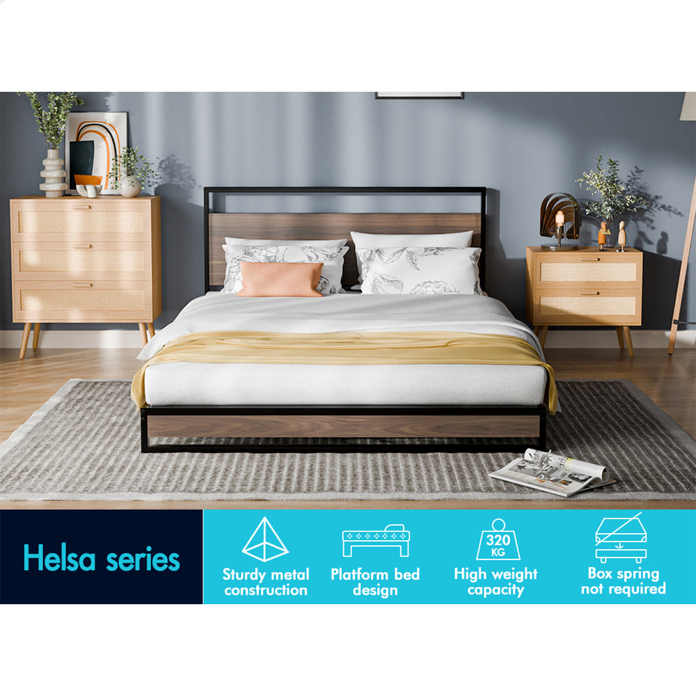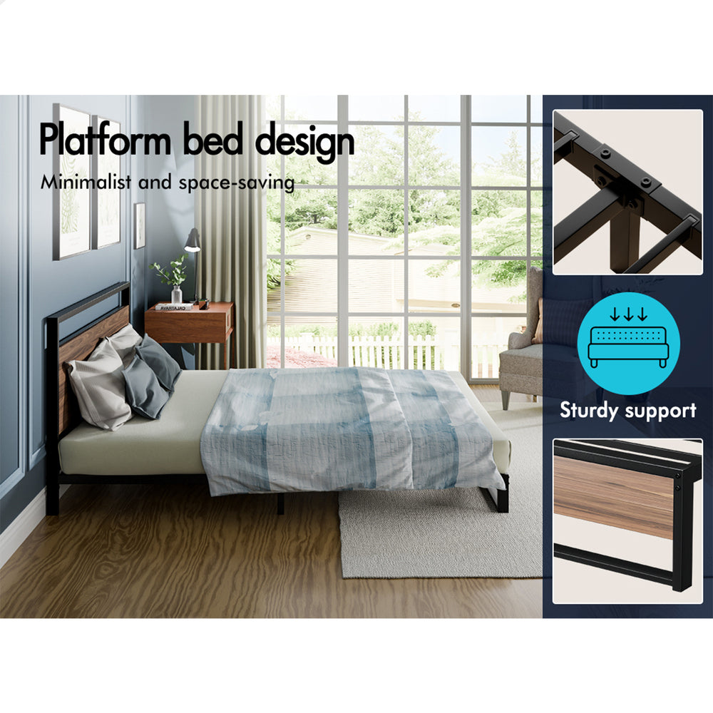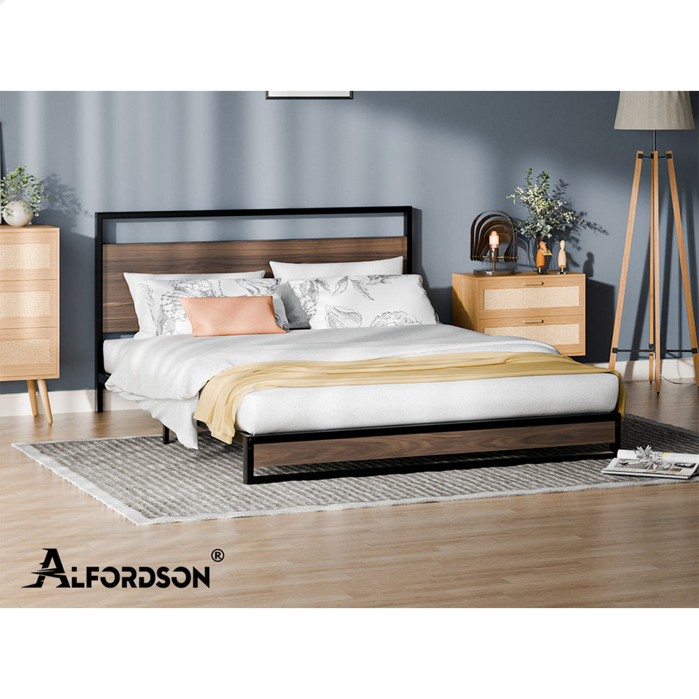 ALFORDSON Metal Bed Frame Queen Size Industrial Platform Mattress Base Wood