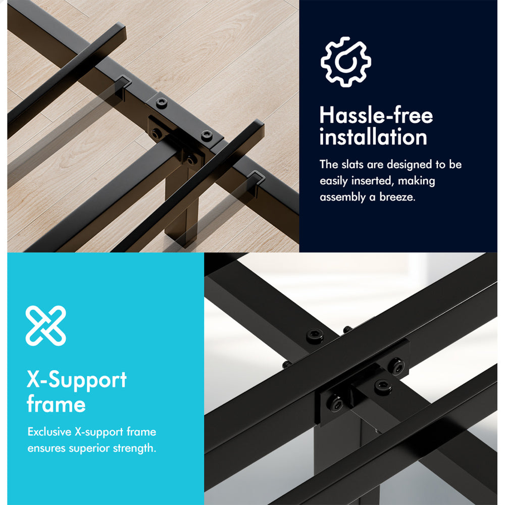 Quality counts - Featuring enhanced metal frame construction, this bed frame boasts unparalleled stability, remaining solid and steady. The heavy-duty steel frame ensures high weight capacity and long-lasting durability.