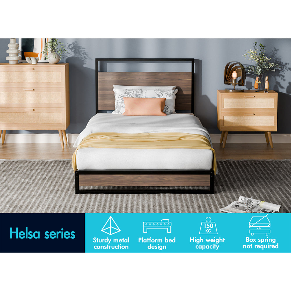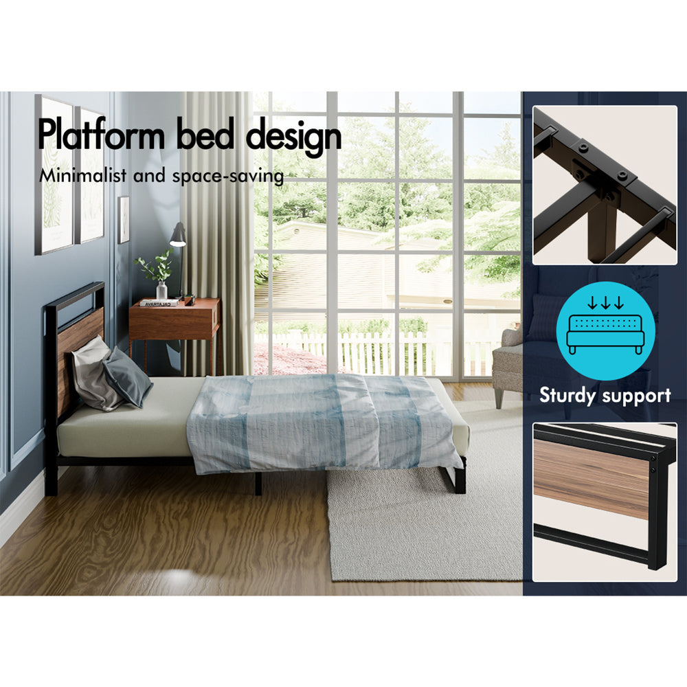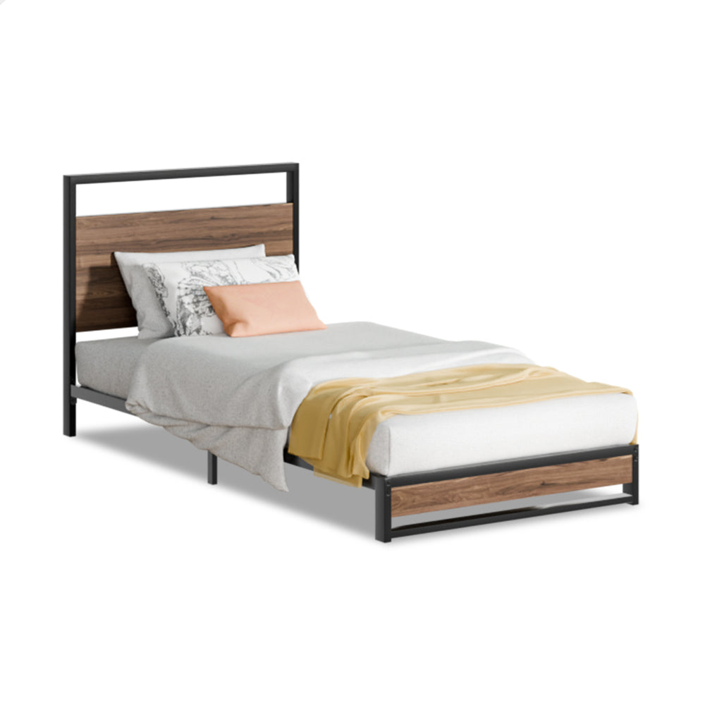 ALFORDSON Metal Bed Frame Single Size Industrial Platform Mattress Base Wood