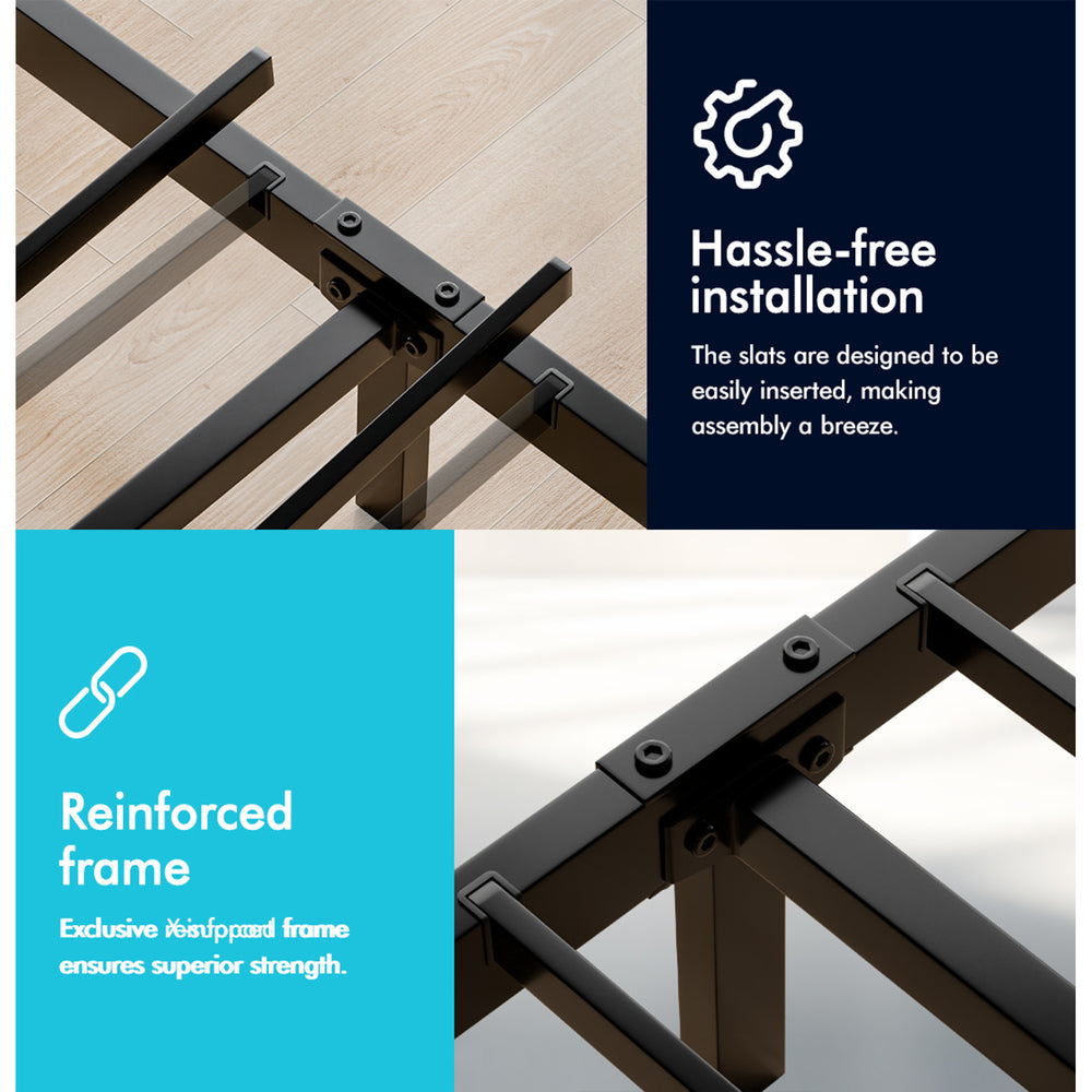 Quality counts - Featuring enhanced metal frame construction, this bed frame boasts unparalleled stability, remaining solid and steady. The heavy-duty steel frame ensures high weight capacity and long-lasting durability.