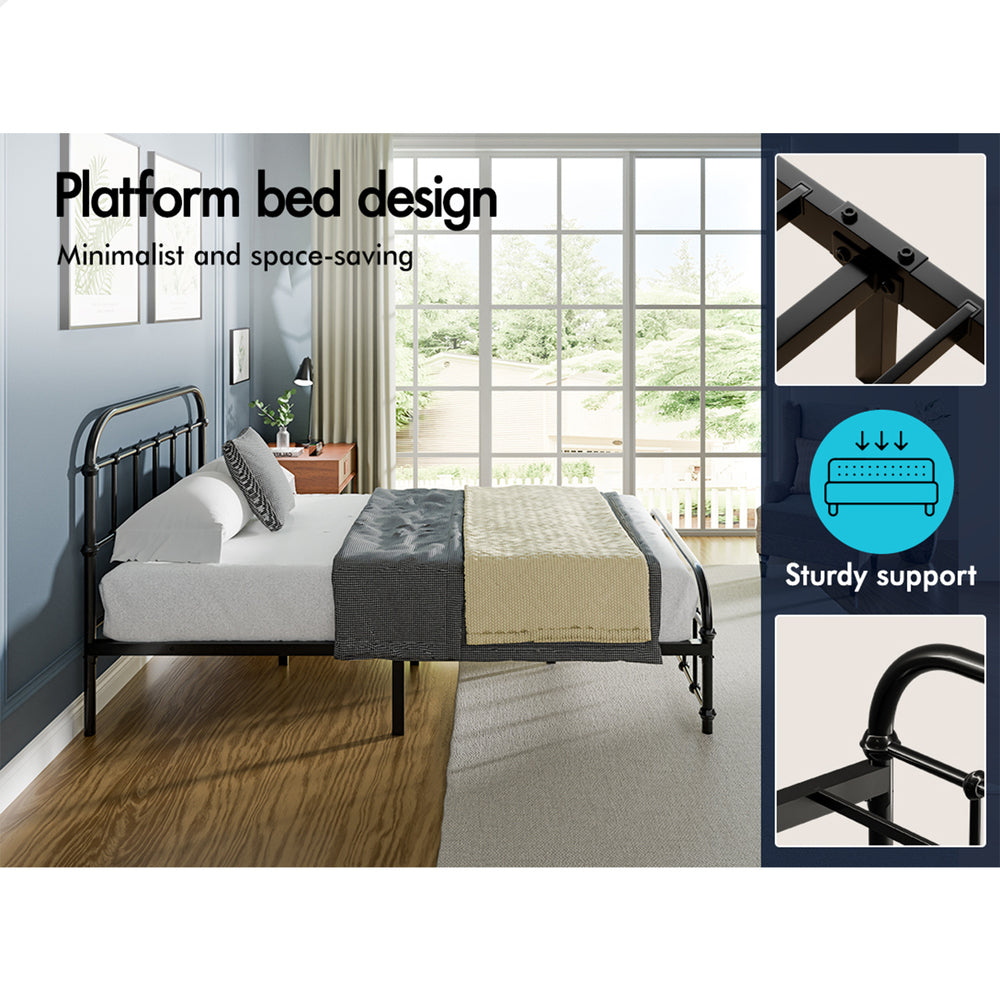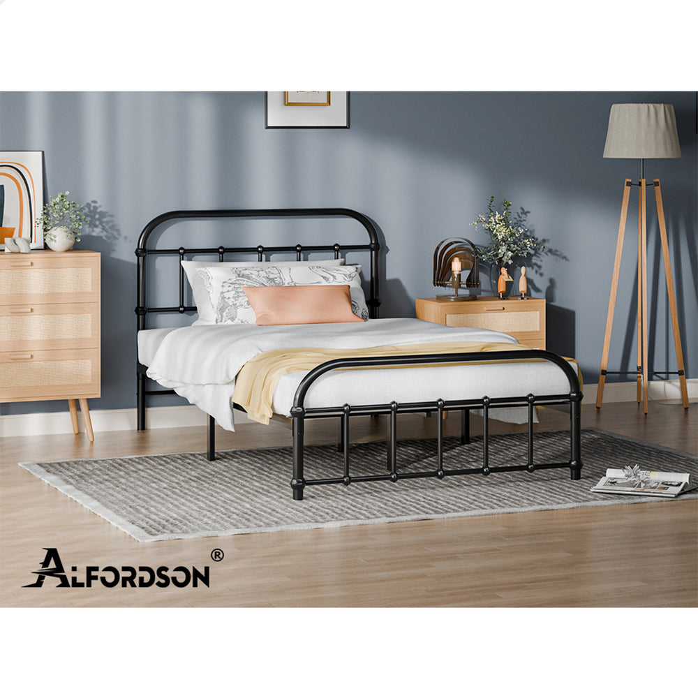 ALFORDSON Metal Bed Frame King Single Size Mattress Base Industrial Platform Black
