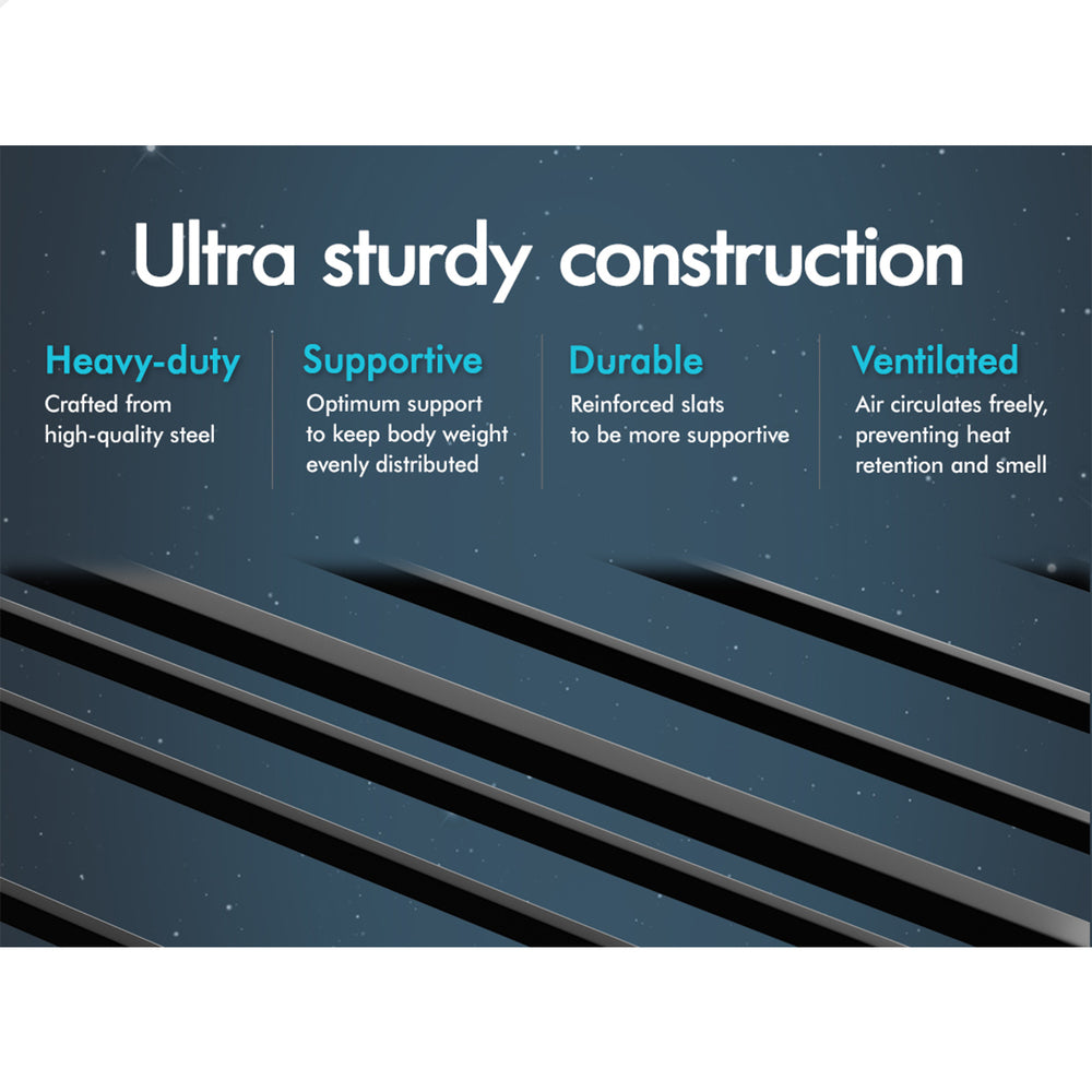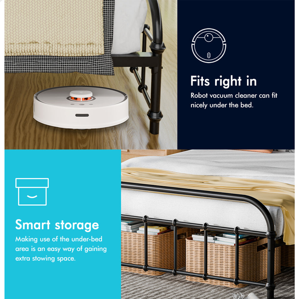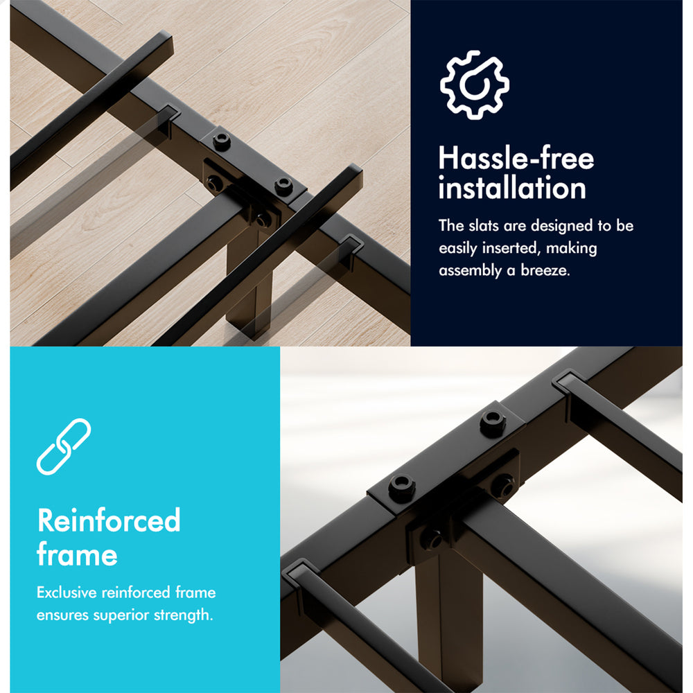 Quality counts - With an anti-sway design at the connection, this bed frame boasts unparalleled stability, remaining solid and steady without any annoying squeaking. The heavy-duty steel construction ensures high weight capacity and long-lasting durability.