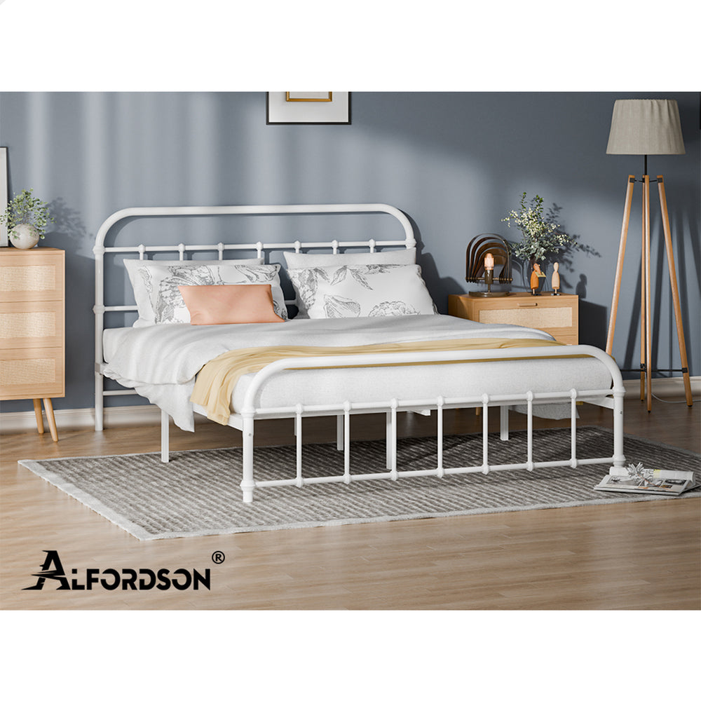 ALFORDSON Metal Bed Frame Double Size Mattress Base Industrial Platform White
