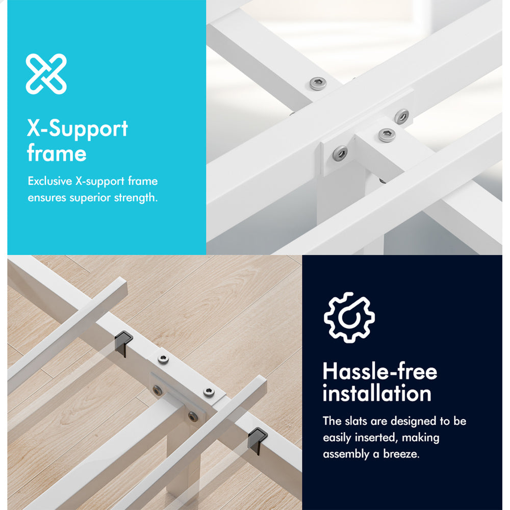 Quality counts - With an anti-sway design at the connection, this bed frame boasts unparalleled stability, remaining solid and steady without any annoying squeaking. The heavy-duty steel construction ensures high weight capacity and long-lasting durability.