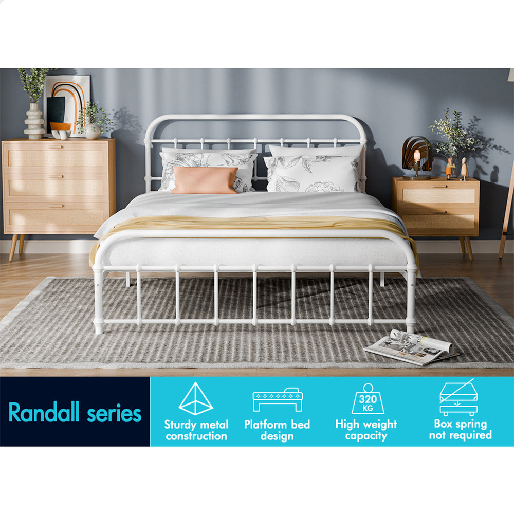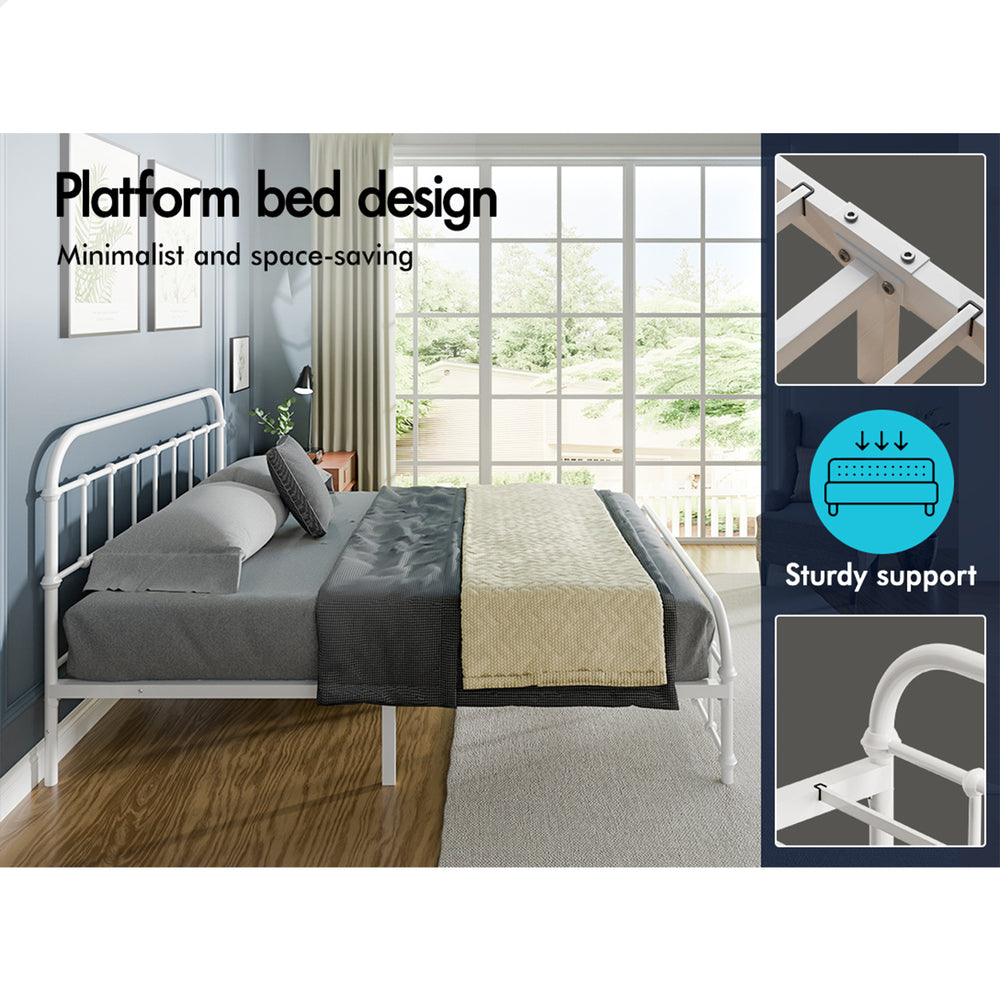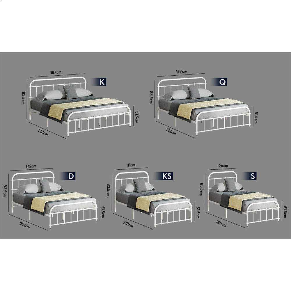 ALFORDSON Metal Bed Frame Queen Size Mattress Base Industrial Platform White