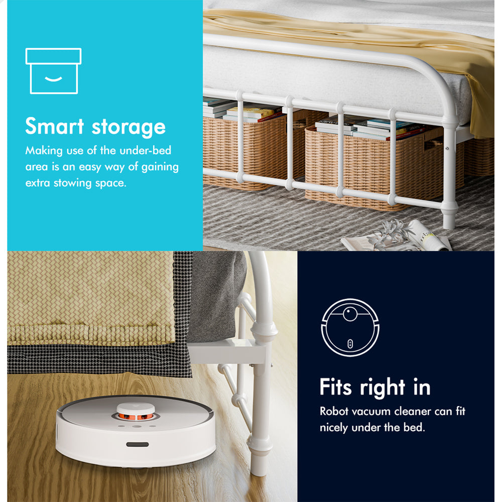 More storage place - The elevating design not only allows robot vacuum cleaner to go through under the bed, but also provides you with an additional storage space.
