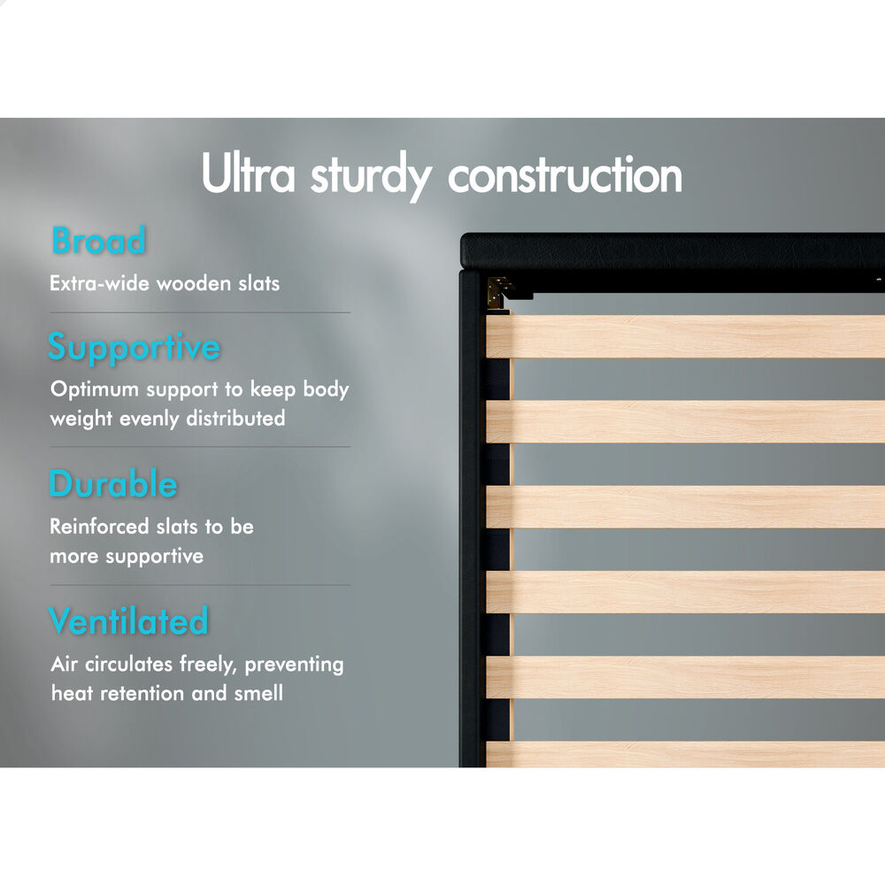 ALFORDSON Bed Frame Double Size Wooden Platform Mattress Base Leather Black