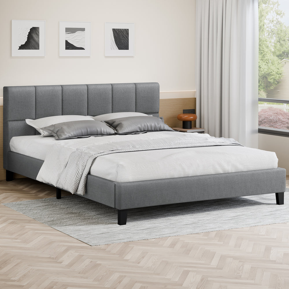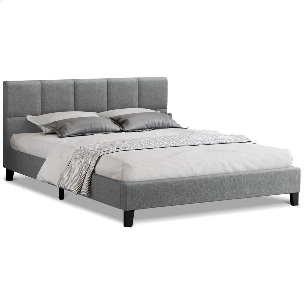 ALFORDSON Bed Frame Double Size Wooden Platform Mattress Base Fabric Grey