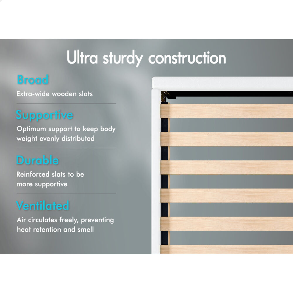 ALFORDSON Bed Frame Double Size Wooden Platform Mattress Base Leather White
